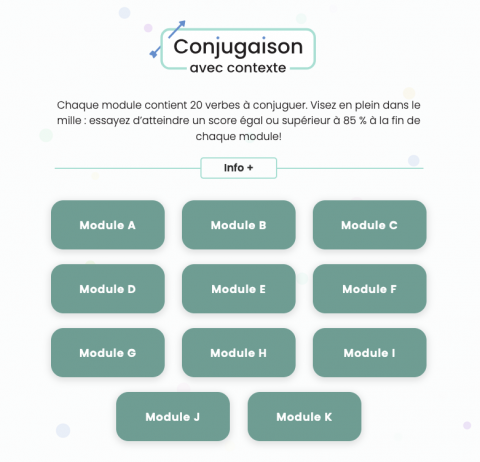 Ressource n°2969 Partagée le 08.09.16 à 15:24 - Mise à jour le 05.08.25 à 09:53 Conjuguer le verbe aux modes, temps et personnes indiqués . Difficile! • 11 modules de 20 verbes • Impression des résultats détaillés • Exercices d'entraînement Accéder4901 Facebook Twitter Linkedin Email Thématique(s) Français Production de l’écrit Destinataire(s) 9e année (~13 ans) 10e année (~14 ans) 11e année (~15 ans) Mots-clés conjugaison exerciseur