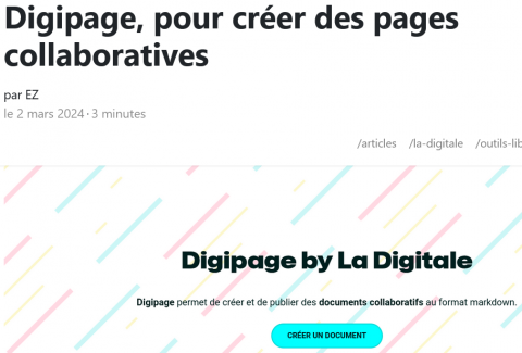 Digipage permet de créer des pages collaboratives au format markdown. Le service est basé sur le projet libre HedgeDoc.