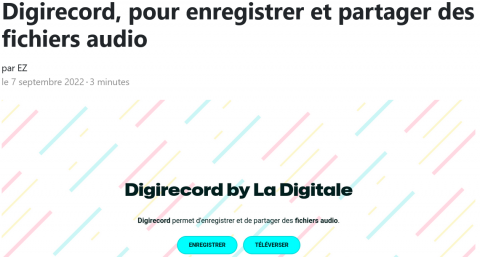 Digirecord est une application en ligne simple qui permet d'enregistrer un fichier audio au format MP3 depuis son navigateur Web.