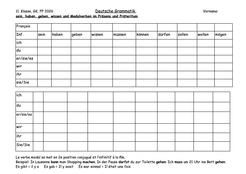 Fiches de grammaire: weil et dass Possessivpronomen TA