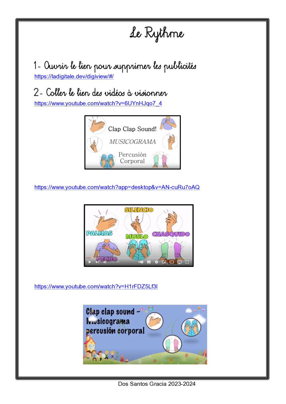 1.- Apprentissage du "rythme" https://www.youtube.com/watch?v=9Ztkp_MiYLk 2.- Le canon : original... demande de la concentration.Lire la suite