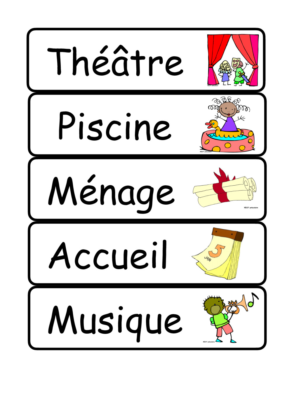 - Jours de la semaine aux couleurs de l'agenda 3-4P