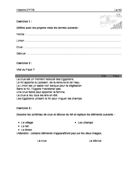 Quelques ressources sur la l'Egypte et la vie quotidienne des Egyptiens, ainsi qu'une fiche sur le Nil.