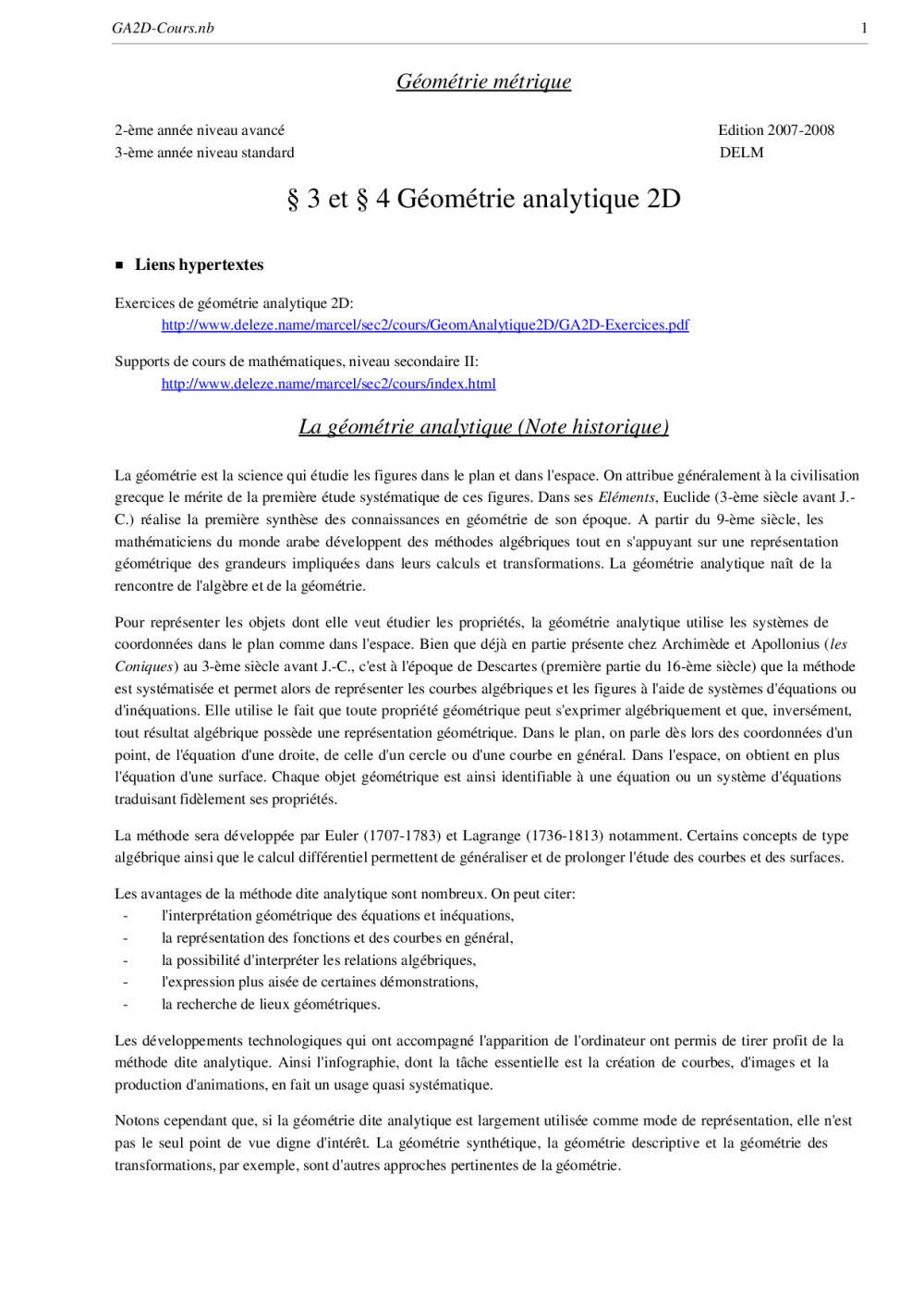Ce support de cours est à destination des enseignants de mathématiques du Gymnase.