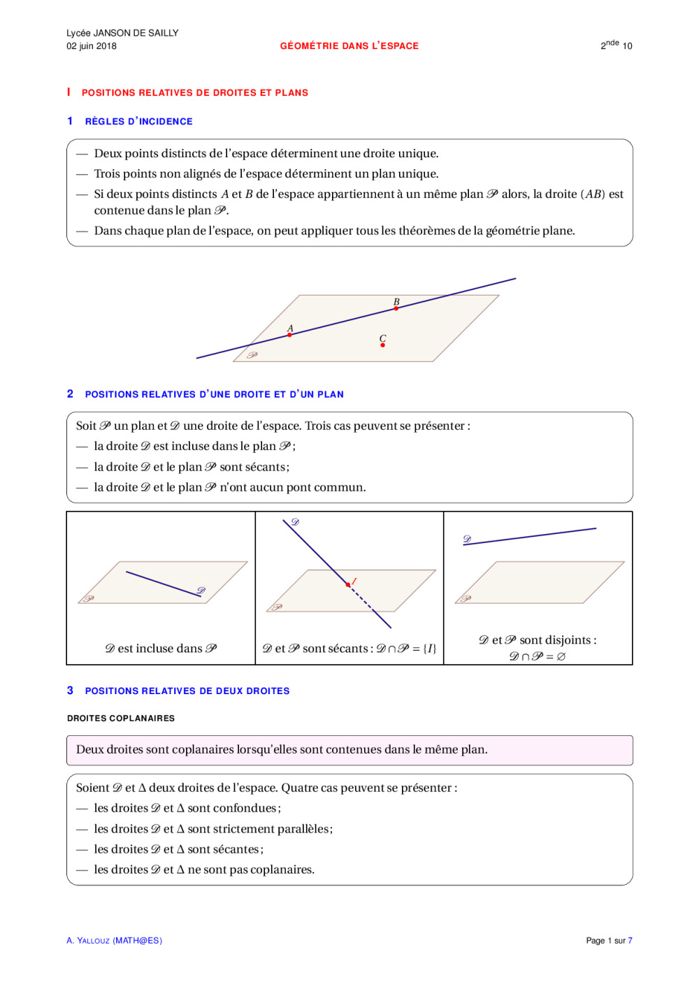 - POSITIONS RELATIVES D’UNE DROITE ET D’UN PLAN