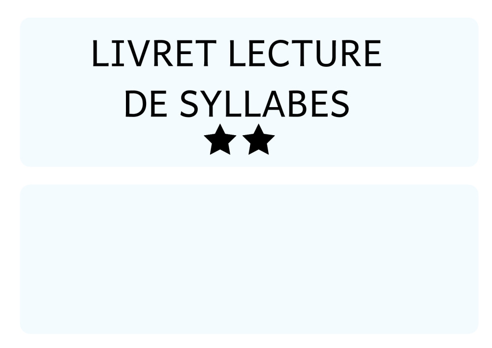 Livret lecture syllabes niv.2 Ressource N°8195 partagée le 08.10.24 à 11:43 - Mise à jour le 29.01.26 à 01:31 Livret à plastifier et relier. Peut-être imprimé sur A4 ou même en A5. Tout télécharger livret_syllabes_bleu.pdf livret_syllabe_exemple.pdf