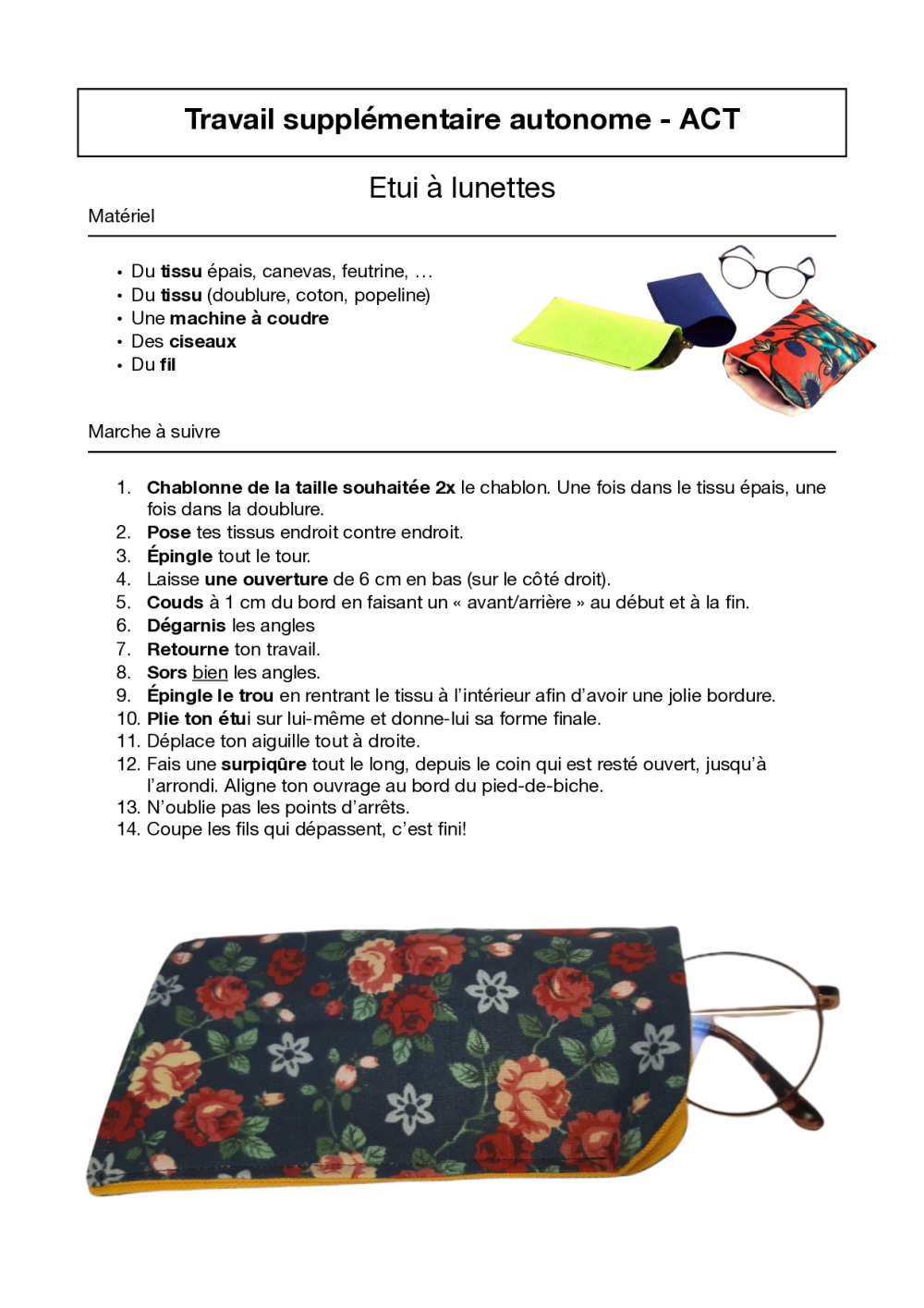 Travail autonome pour s'occuper, un étui à lunettes. Le patron se trouve sur le blog "couture-enfant".
