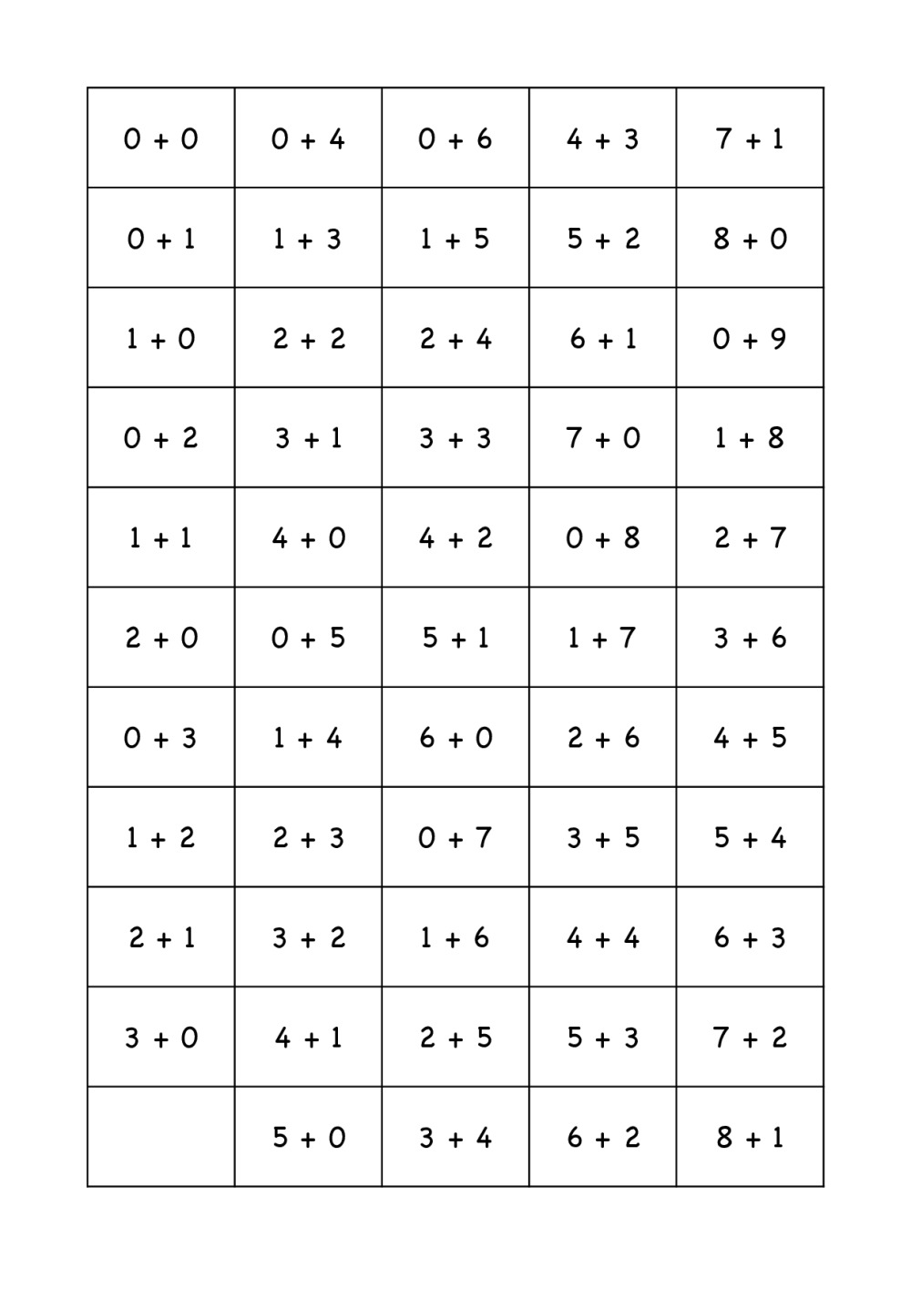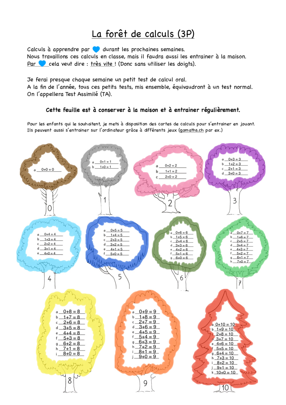 Devoir à domicile pour la mémorisation du répertoire additif --> 10