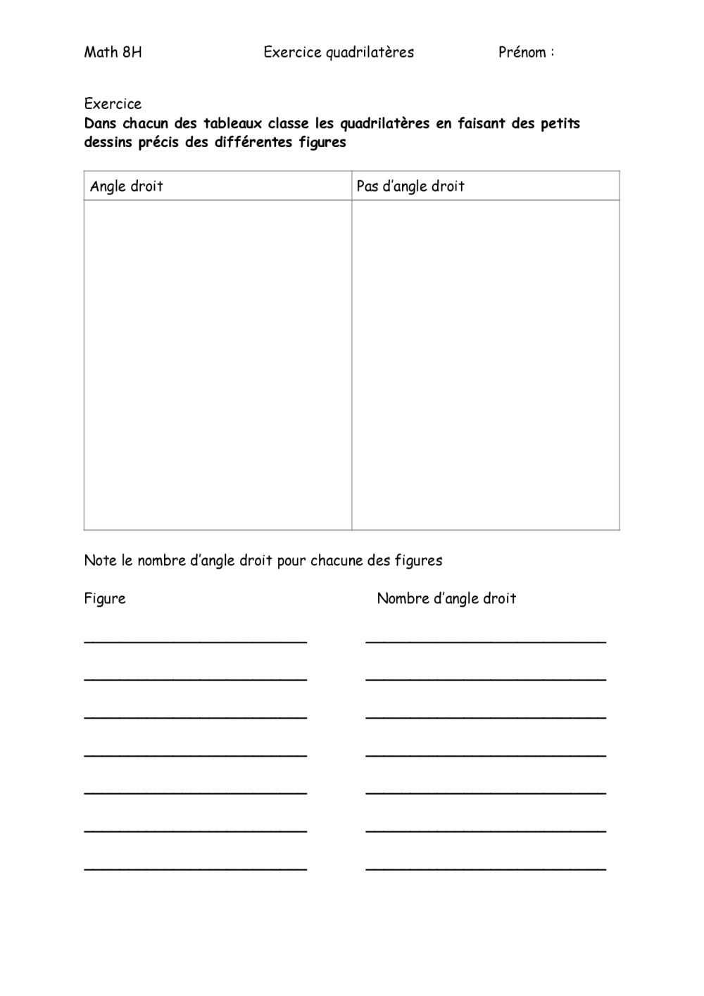Bonjour J'ai créé un document sur les quadrilatères. Les élèves doivent tout simplement classer les figures géométriques selon leurs différentes propriétés et faire des minis croquis.Lire la suite