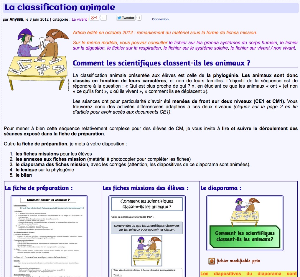 Séquence sur la classification animale : 1) Notion du vivant 2) Règne et embranchement 3) Arbre de classification 4) TS Liens qui m'ont aussi insipirés : https://www.anyssa.org/classedesgnomes/wp-content/uploads/documents/sciences/vivant/classer-animaux_annexe-fiches.pdf http://svtsite.free.fr/spip (...)Lire la suite