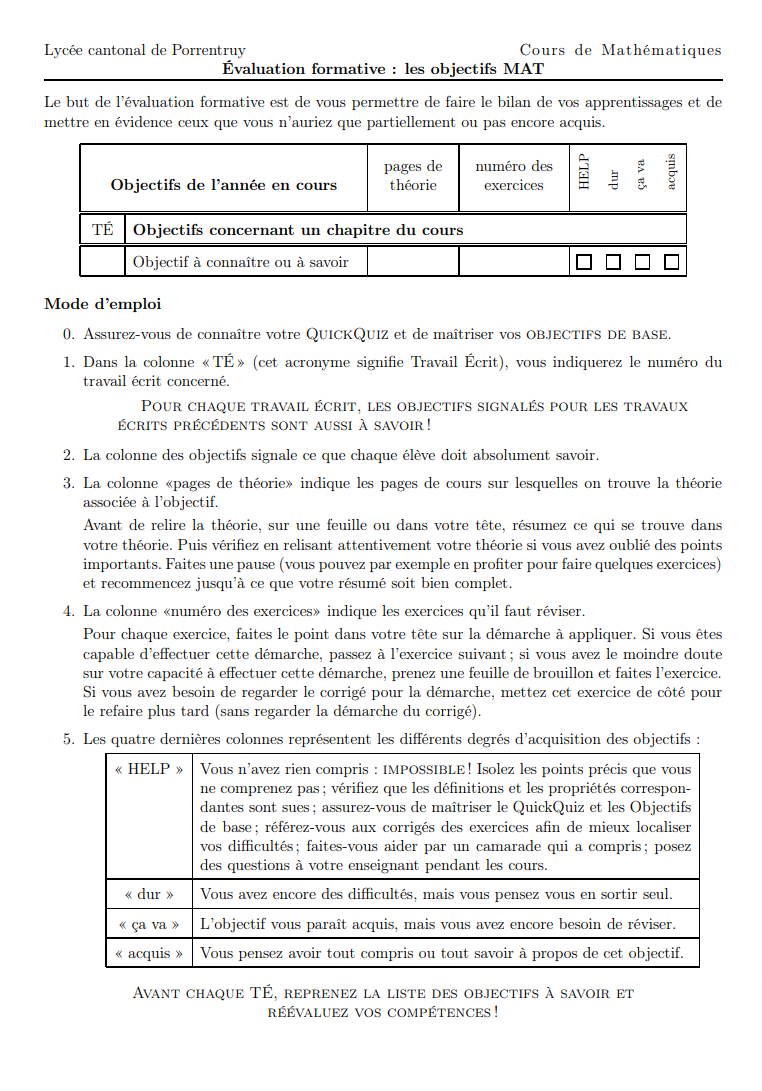 Document sous la forme d'une évaluation formative à l'attention des gymnasiens, afin de les aider à identifier leurs connaissances.Lire la suite