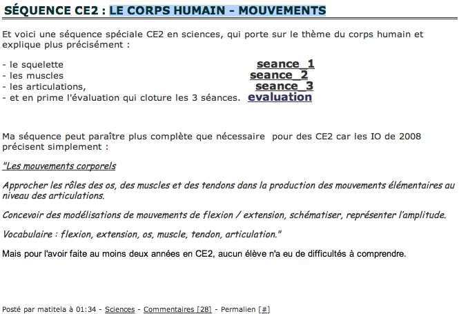 Fiches didactiques sur le squelette et les muscles repérées sur internet.Lire la suite