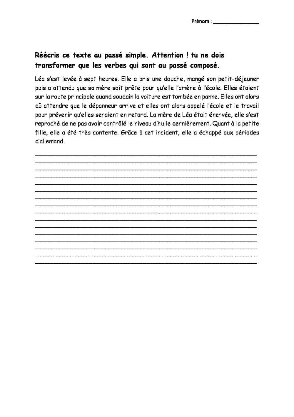 Texte au passé composé à transformer au passé simple.Lire la suite