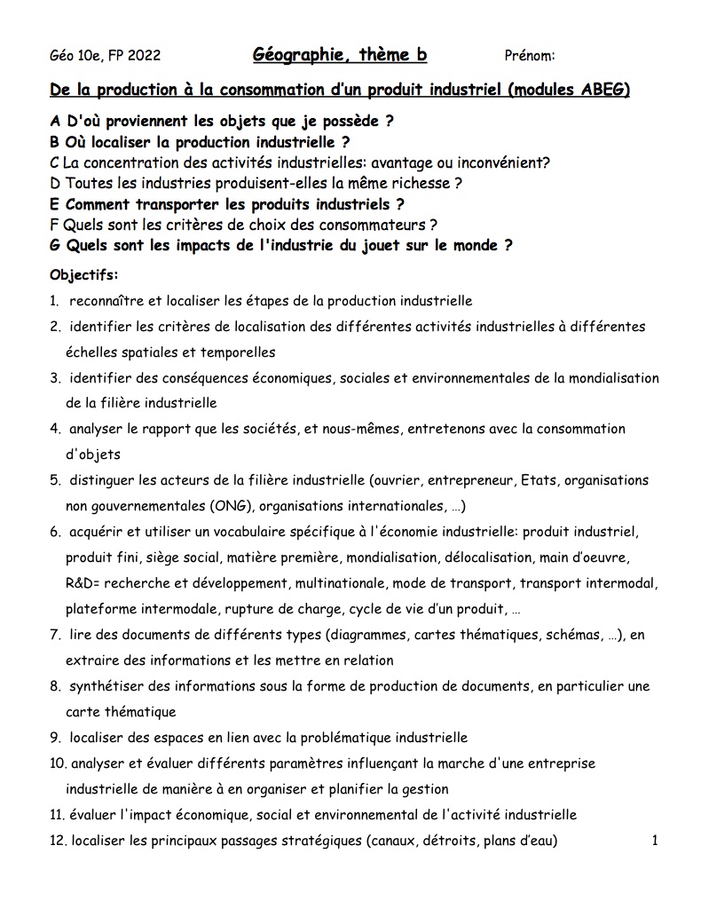 10 géo, th. b - De la production à la consommation d’un produit industriel