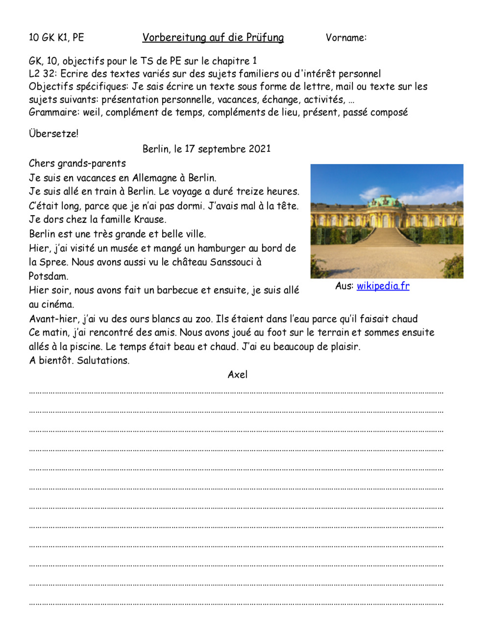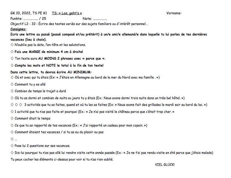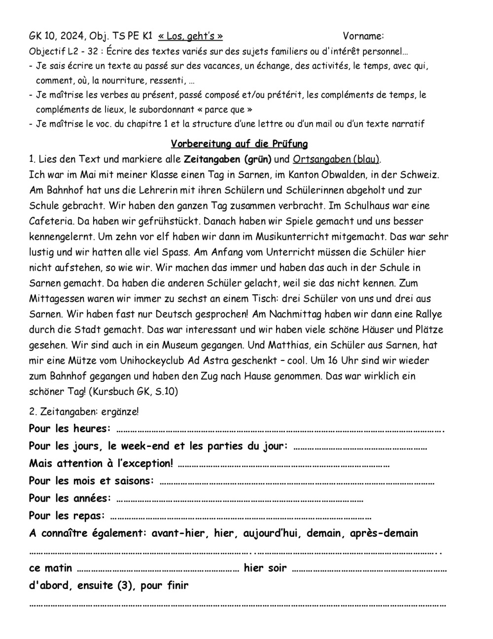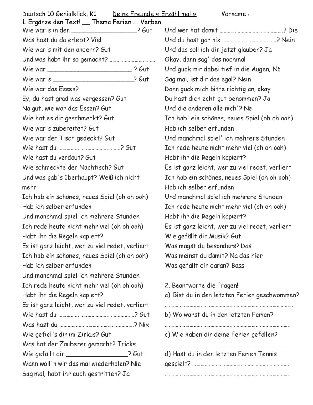 10GK K1, PE, prép., obj., gram. et test, deine Freunde "Erzähl mal",