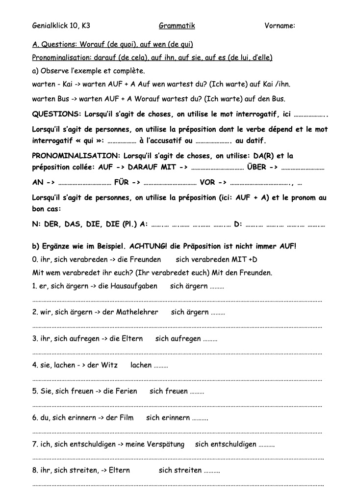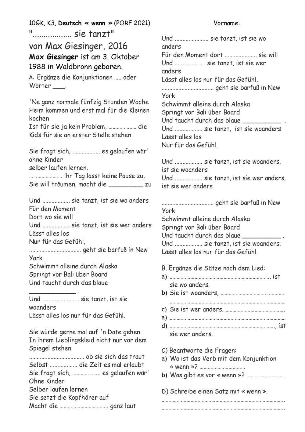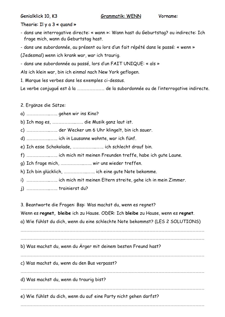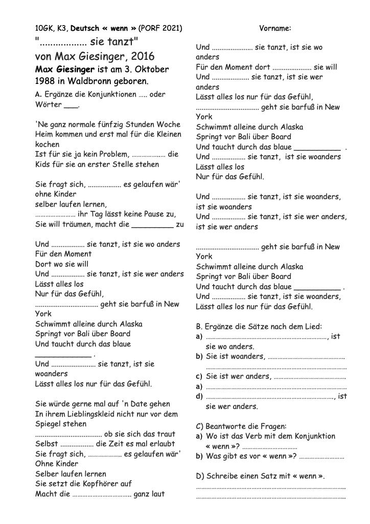 10GK K3 QUAND, wenn, als, wann, worauf, darauf + chanson "Wenn sie tanzt", Dominos, Alles steht Kopf