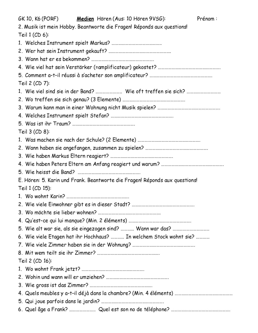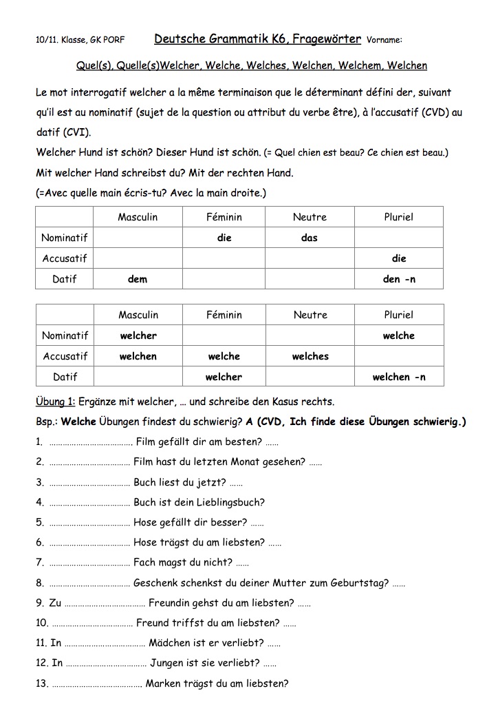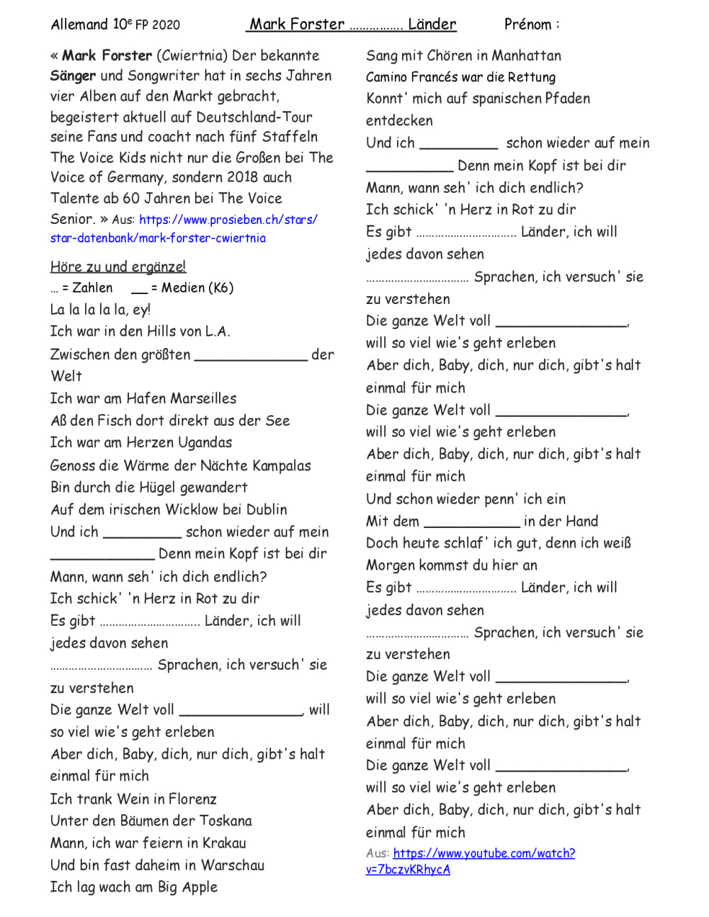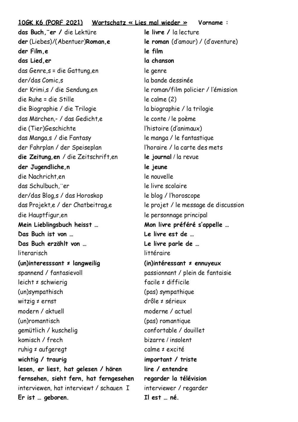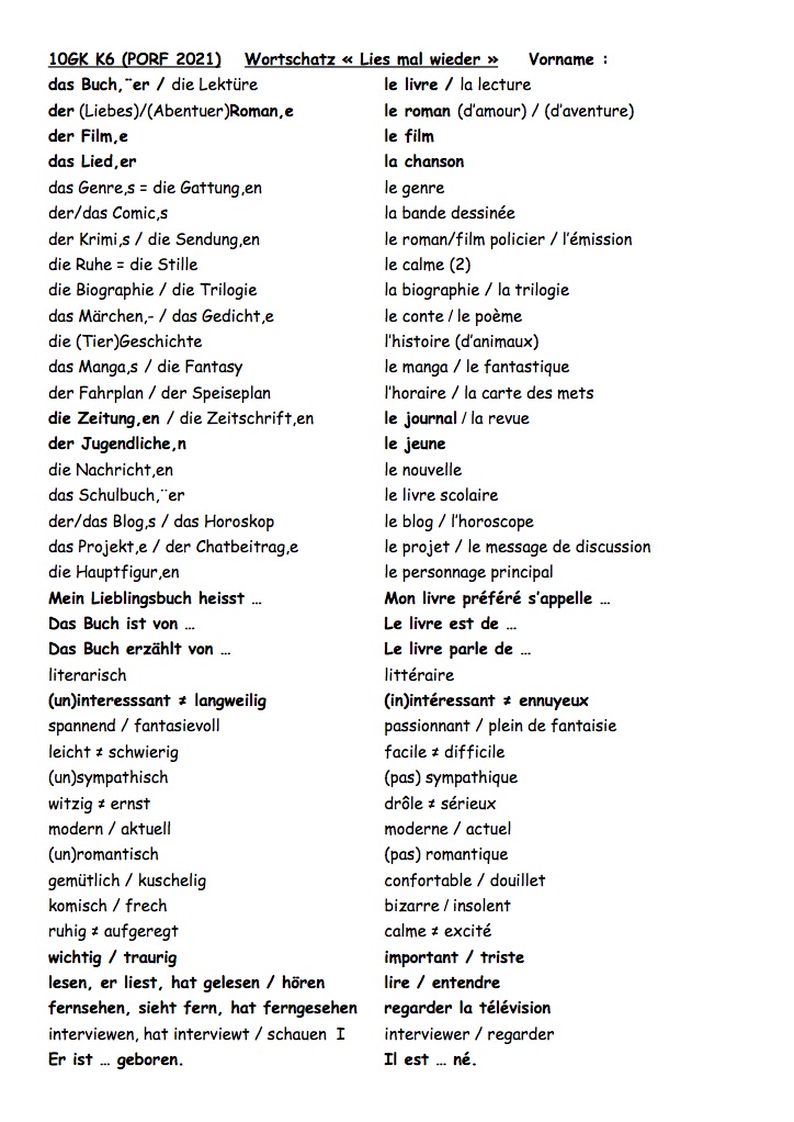 10GK K6 Fiche sur Welcher et mot inter, Mark Forster 194 Länder, MC K6, Gram et Von, Ex. et CE, Thema Lesen