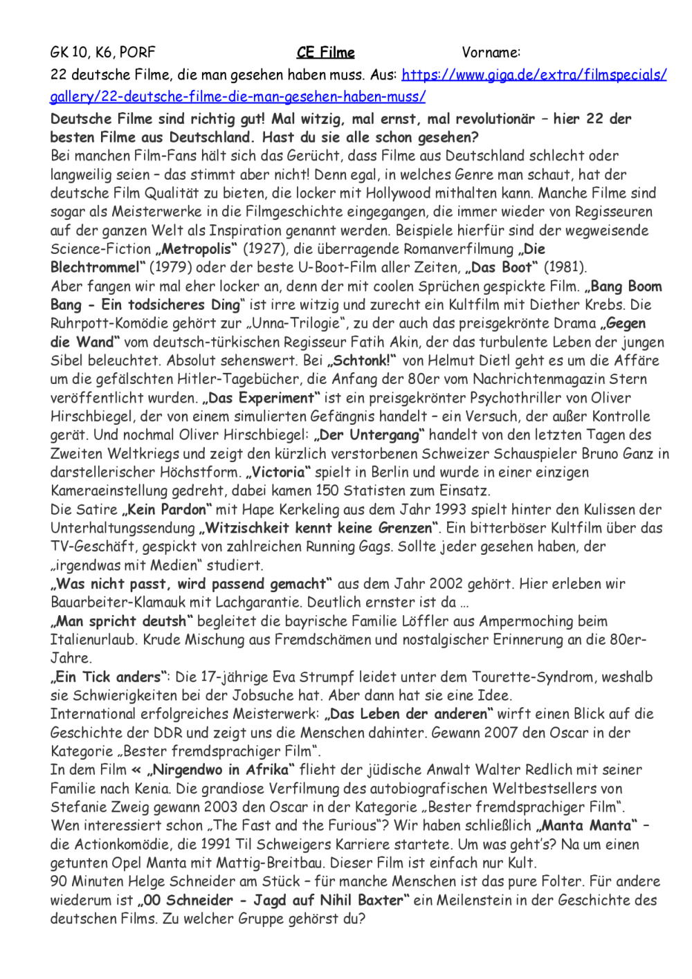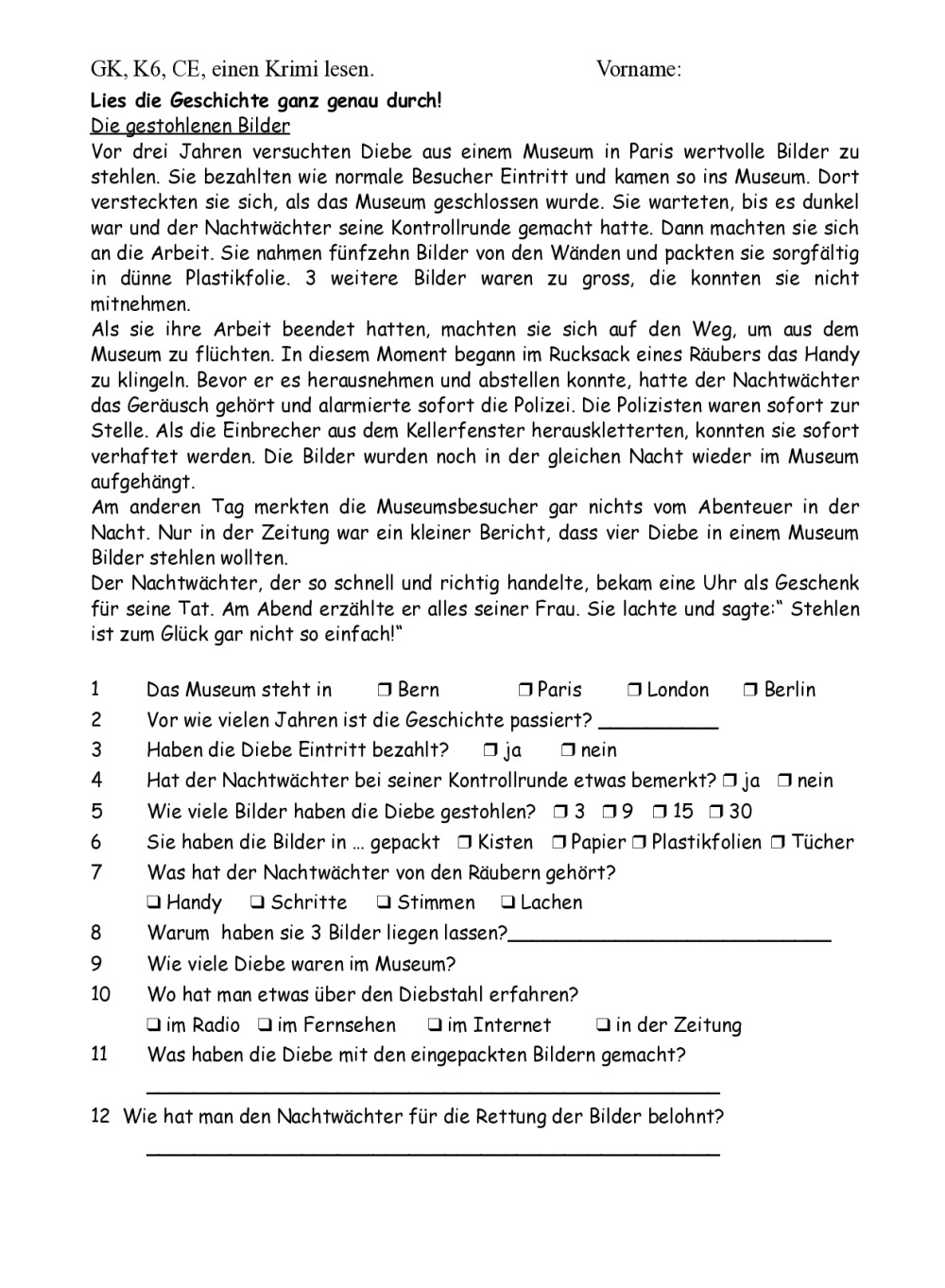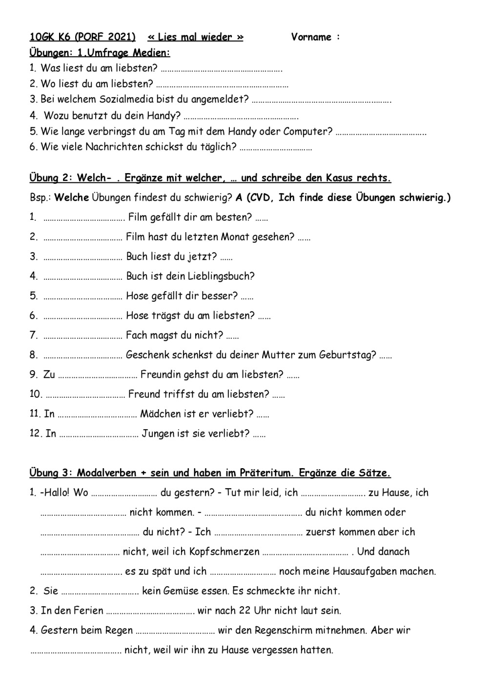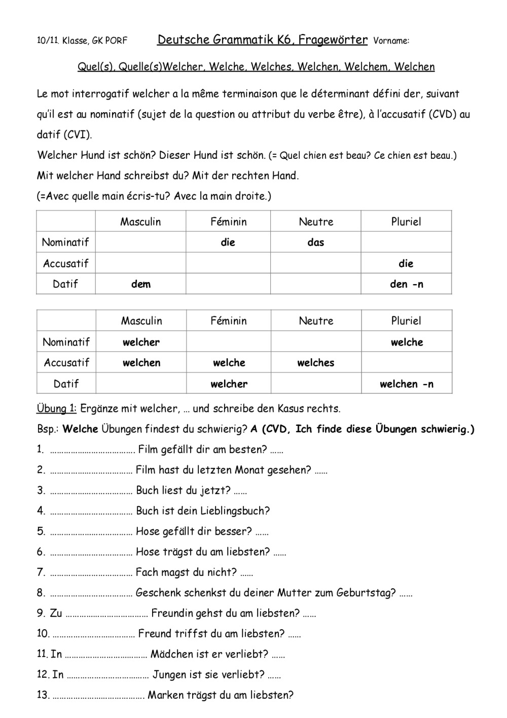 10GK K6 Fiche sur Welcher et mot inter, Mark Forster 194 Länder, MC K6, Gram et Von, Ex. et CE, Thema Lesen