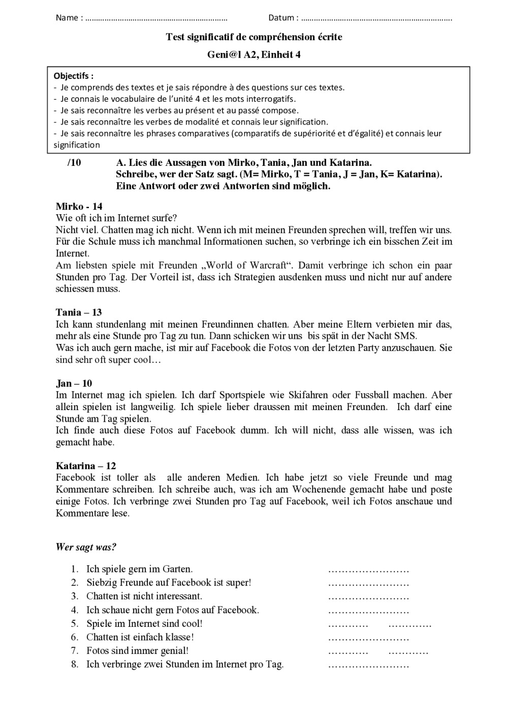 Note: l’auteur indique que son évaluation sommative ne respecte pas certaines de nos recommandations se référant notamment au Cadre Général de l’Évaluation: