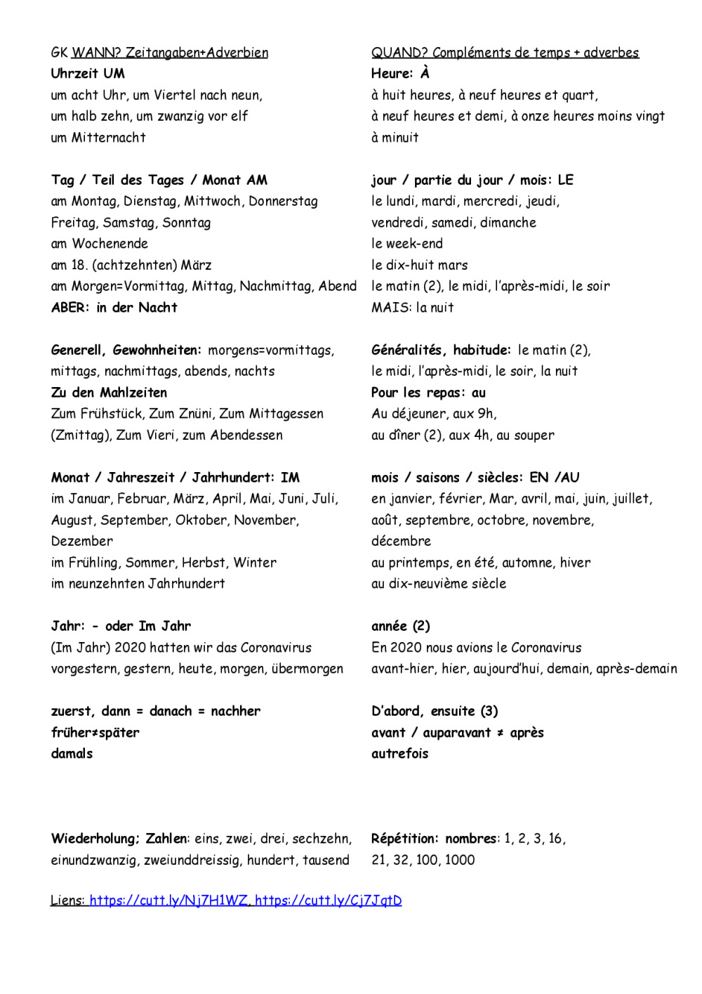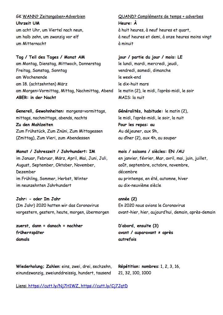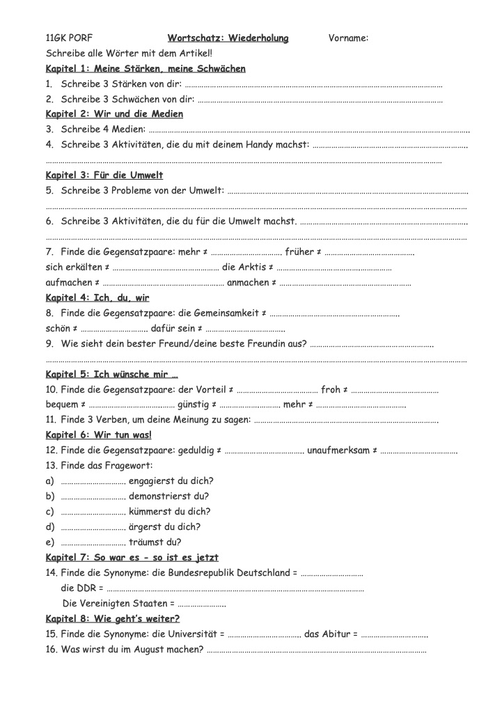 Fiches de vocabulaire en lien avec les chapitres de GK K10 et K11.