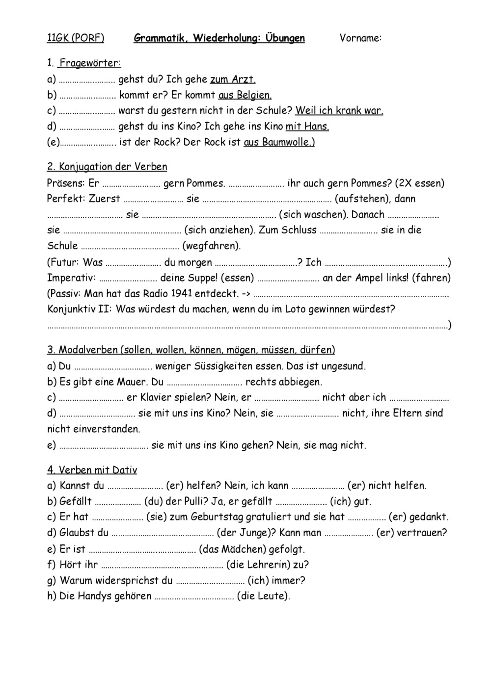 Fiche d'exercices sur les différents sujets de grammaire. Modifié le 29.8.22