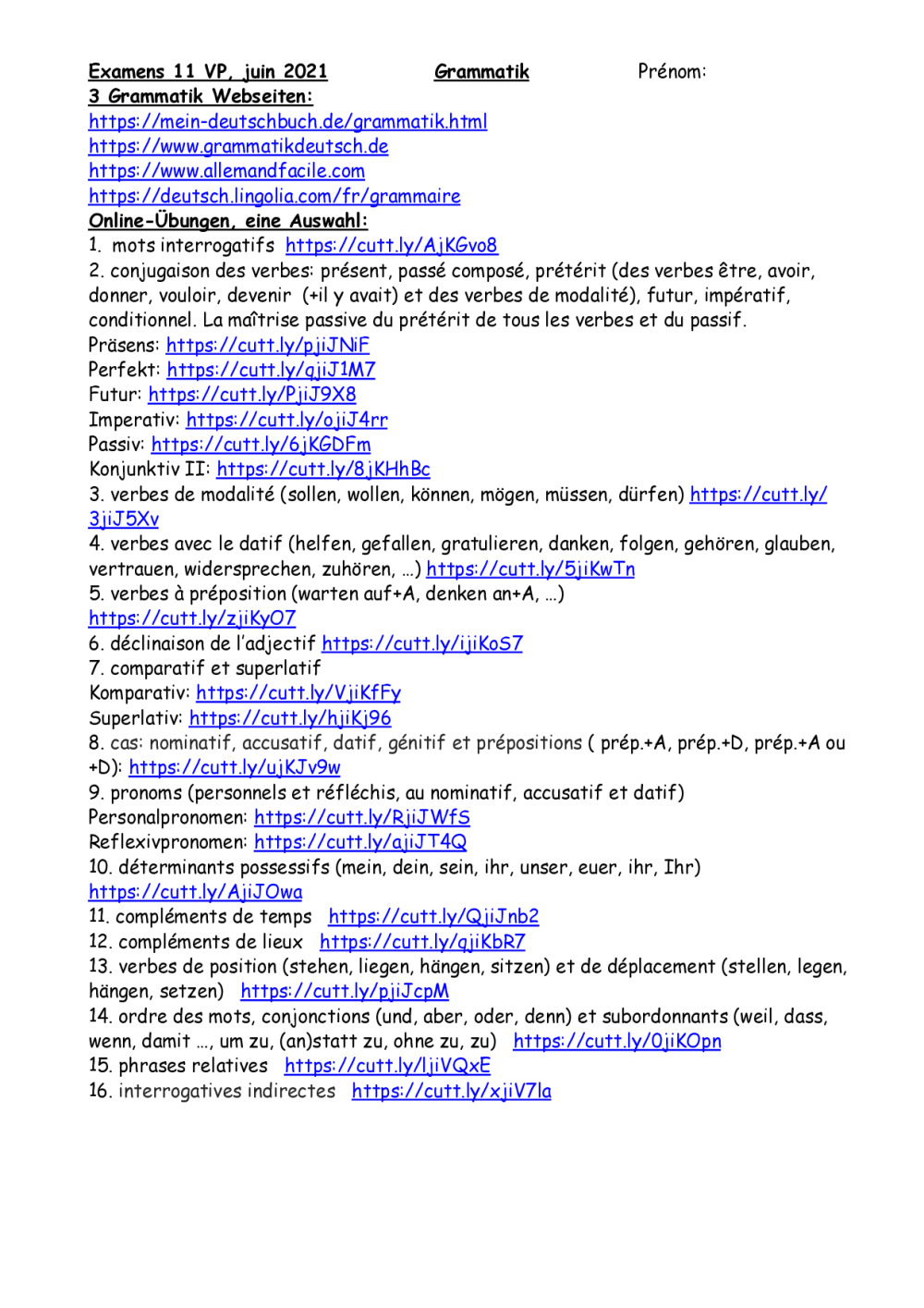 Fiche objectifs exa et sites internet d'exercices de grammaire.