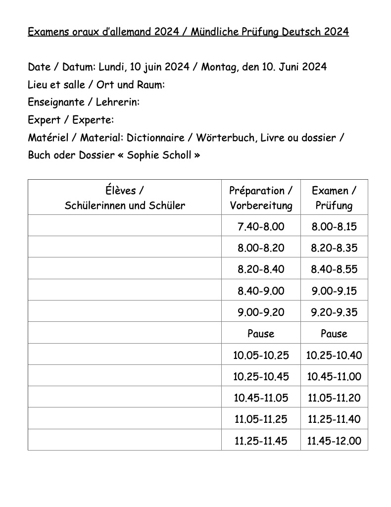 Tableau de passage oral (exemple pour 14 élèves par 2)