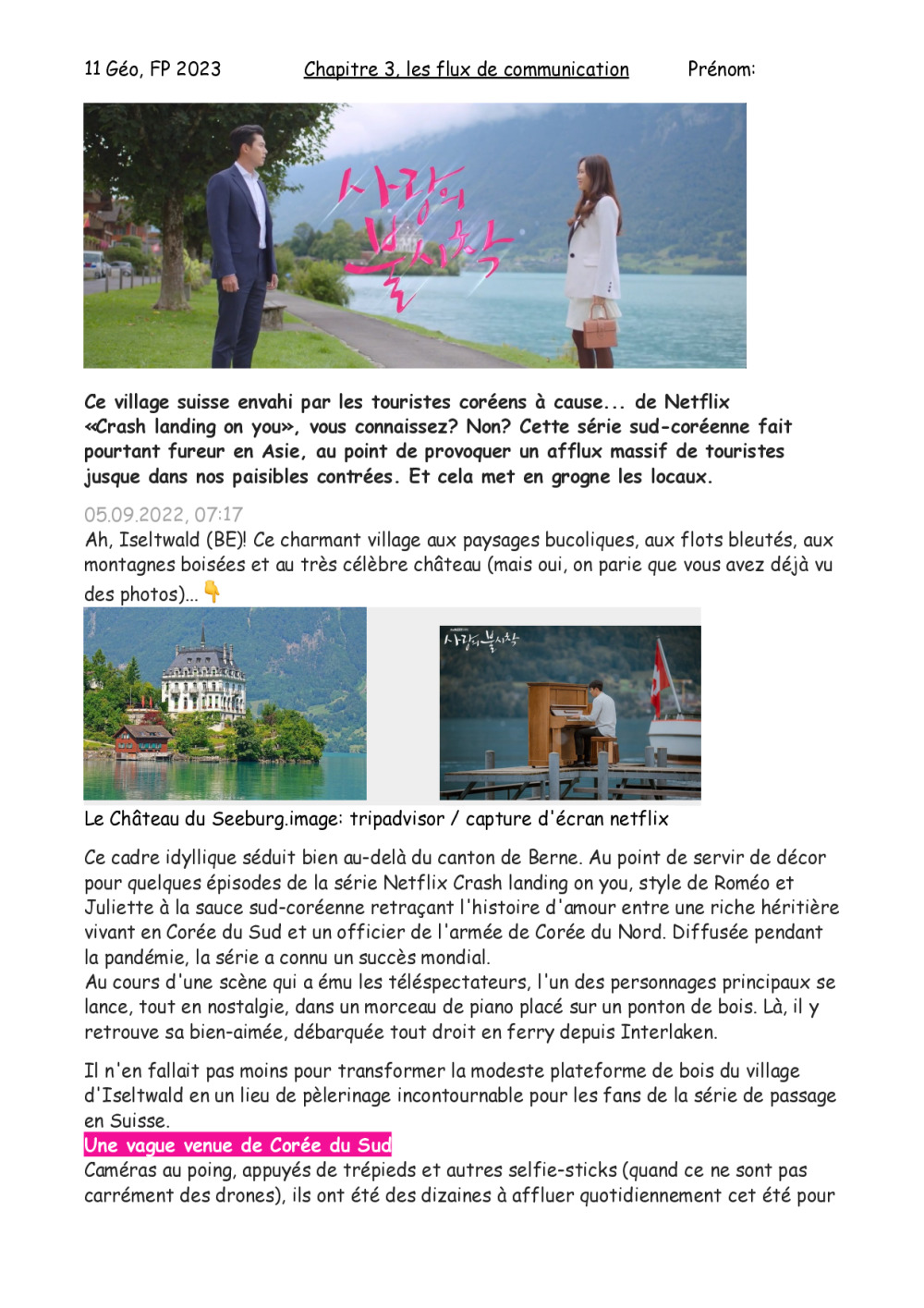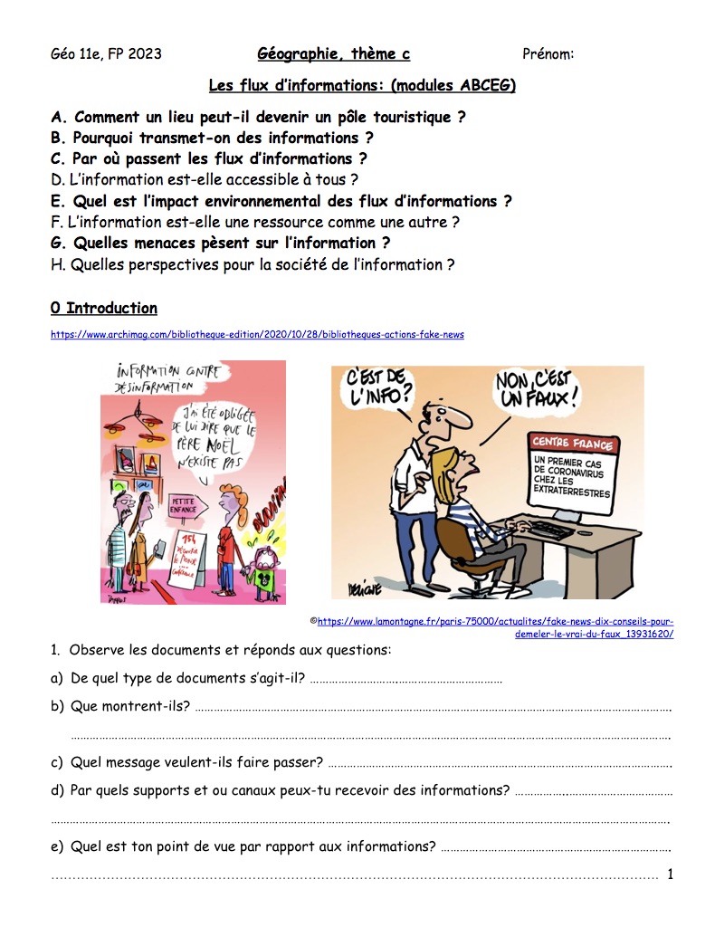 11 géo, thème c, Les flux d’informations: (modules ABCEG), + tourisme création d'un dépliant