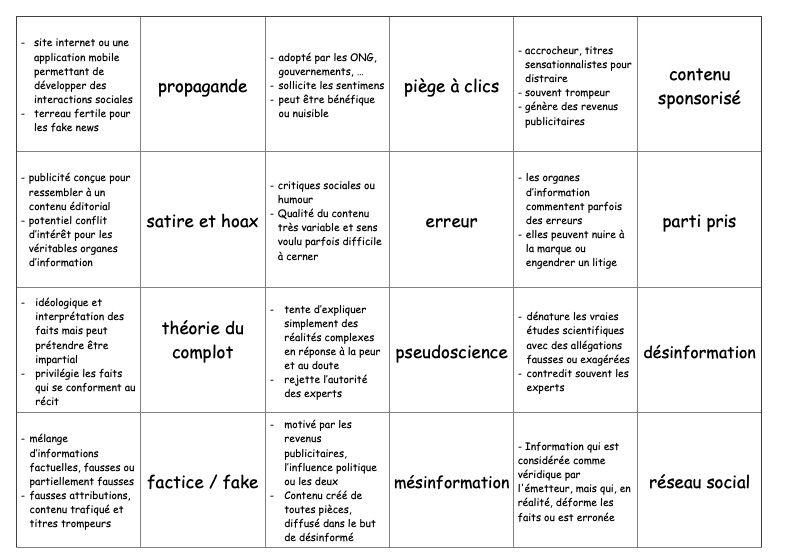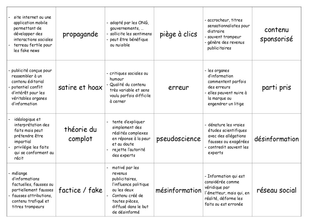 Domino ou memory sur les termes en lien avec les fake news