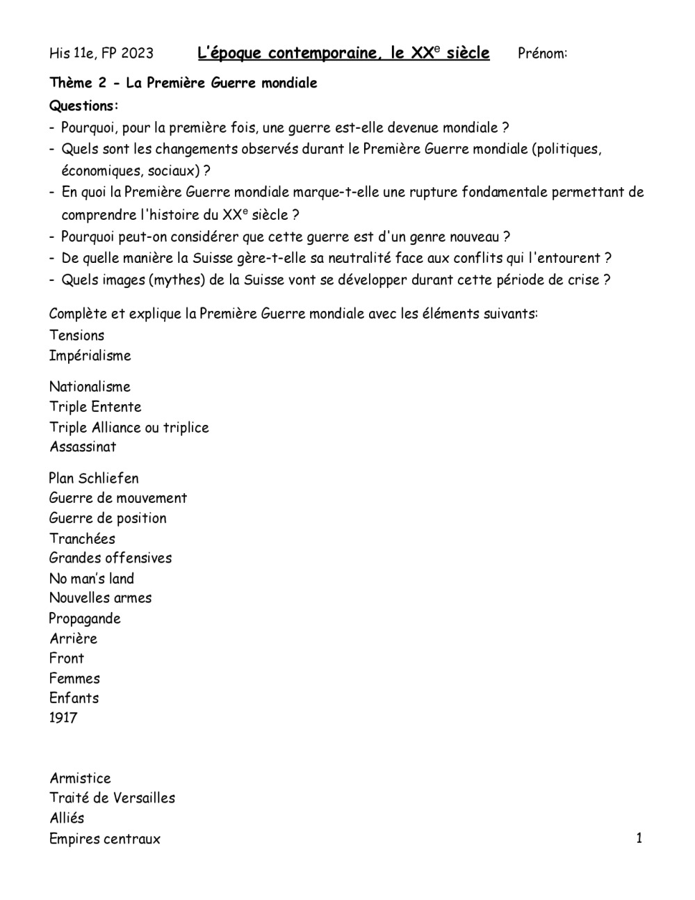 11 histoire, th. 2 - La Première Guerre mondiale et analyse de documents