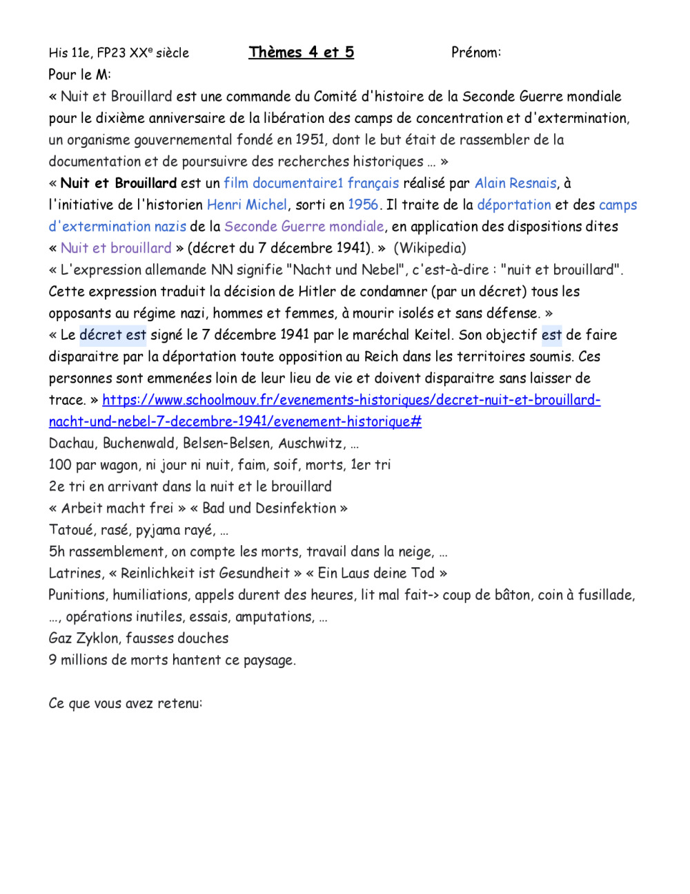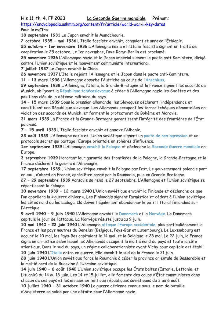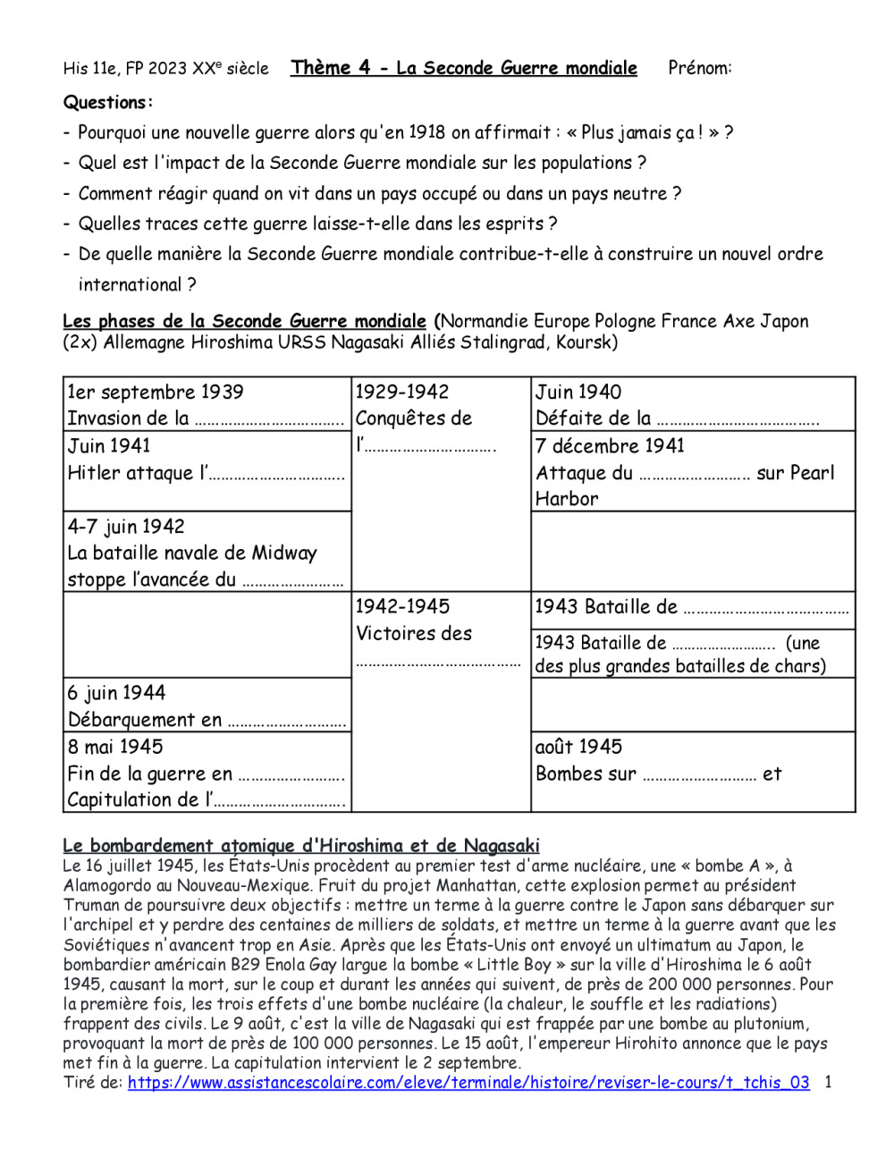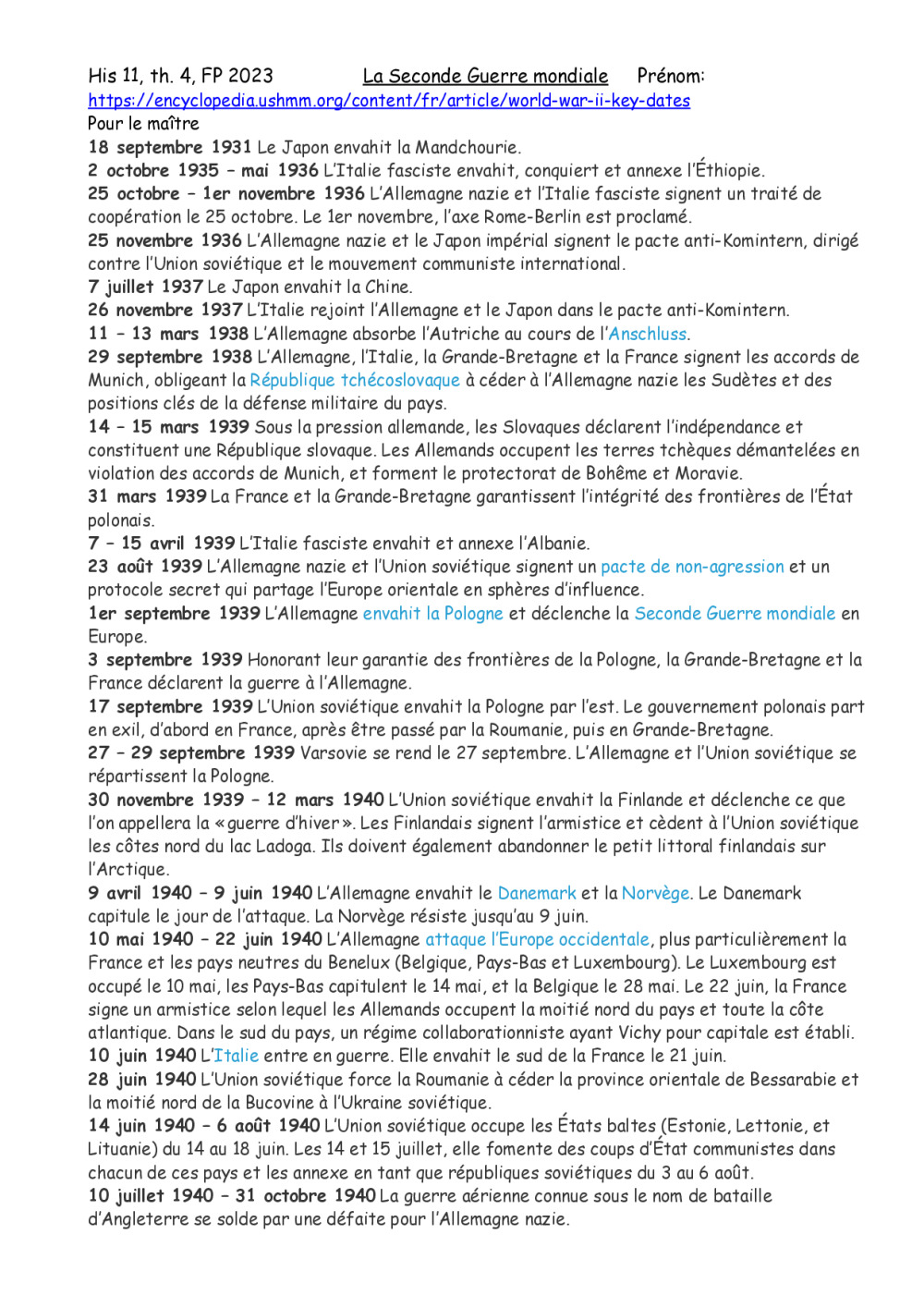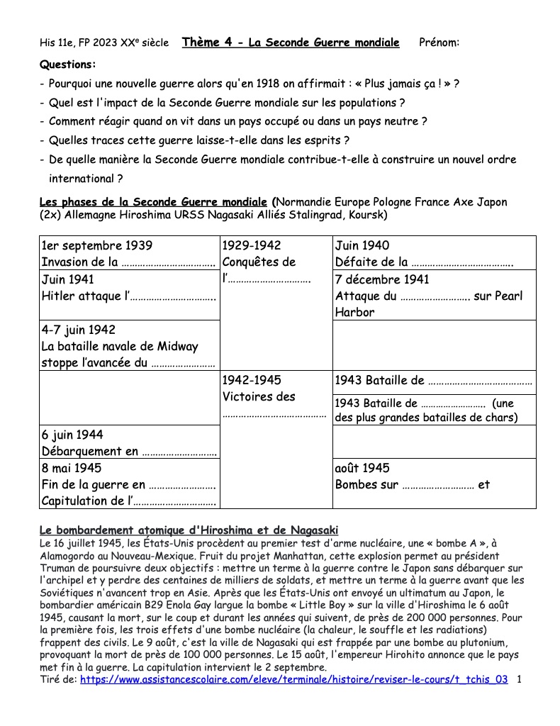 Cours sur le thème 4, Seconde Guerre mondiale, 2023