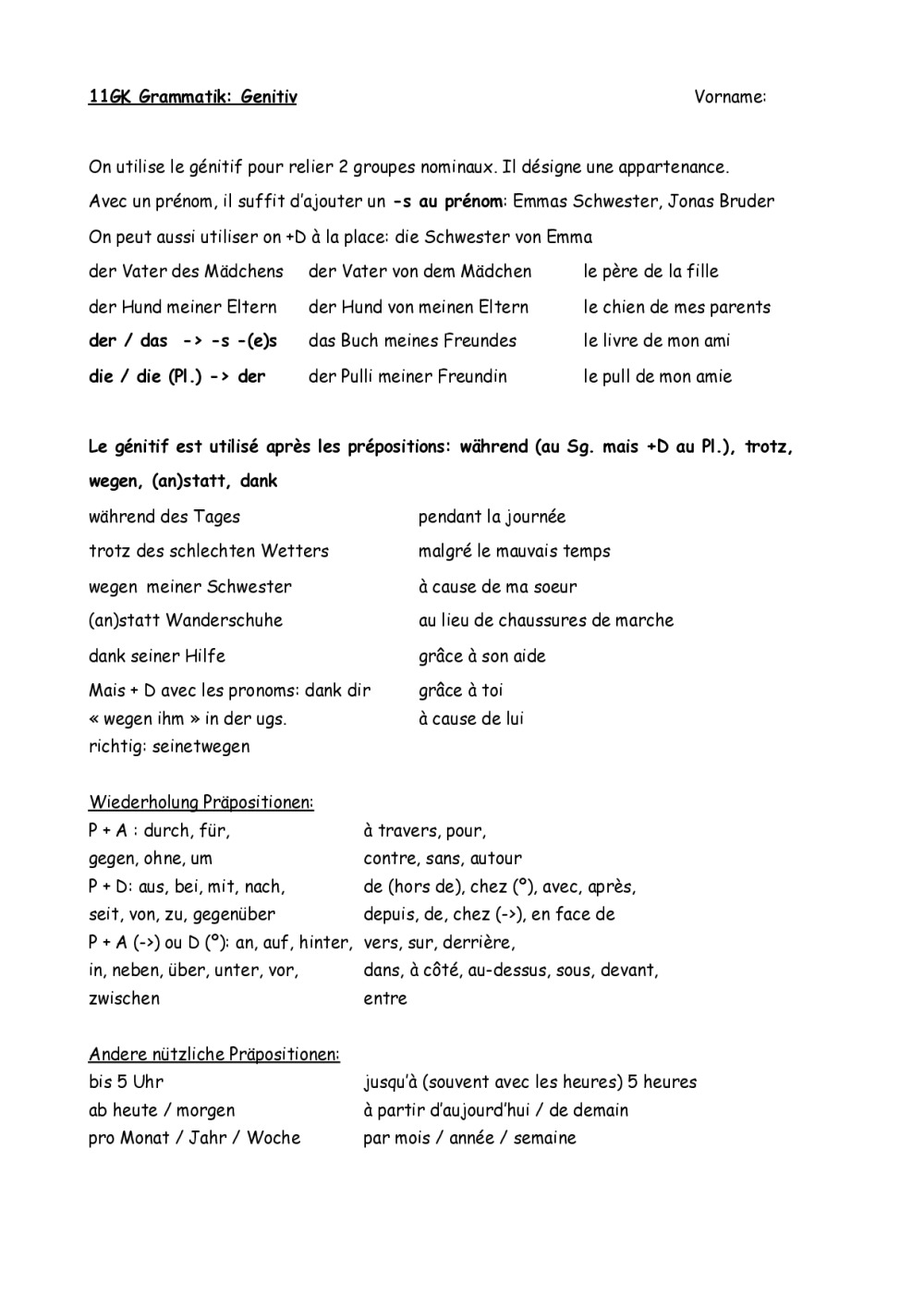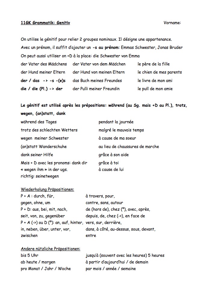 sur le génitif et révisions des prépositions