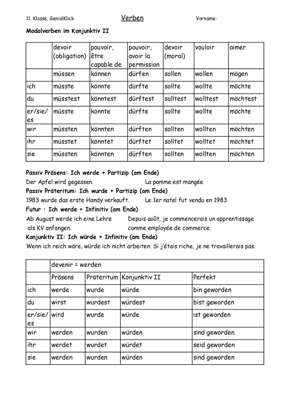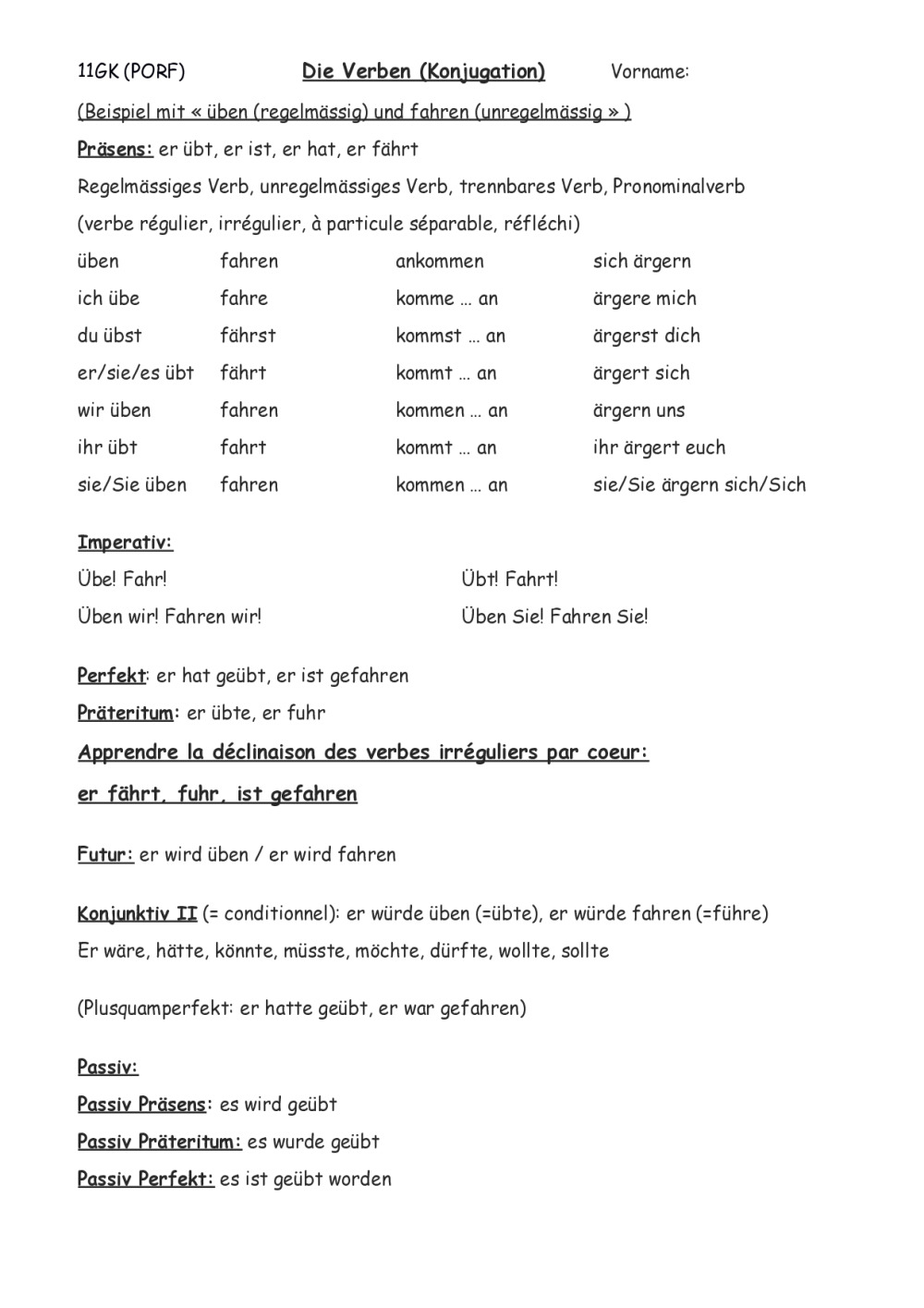 11GK Gram: Adverbien, Genitiv + Präp, Passiv, Futur, Konj.II, CDL, CDT, Konjugation aller Zeitformen
