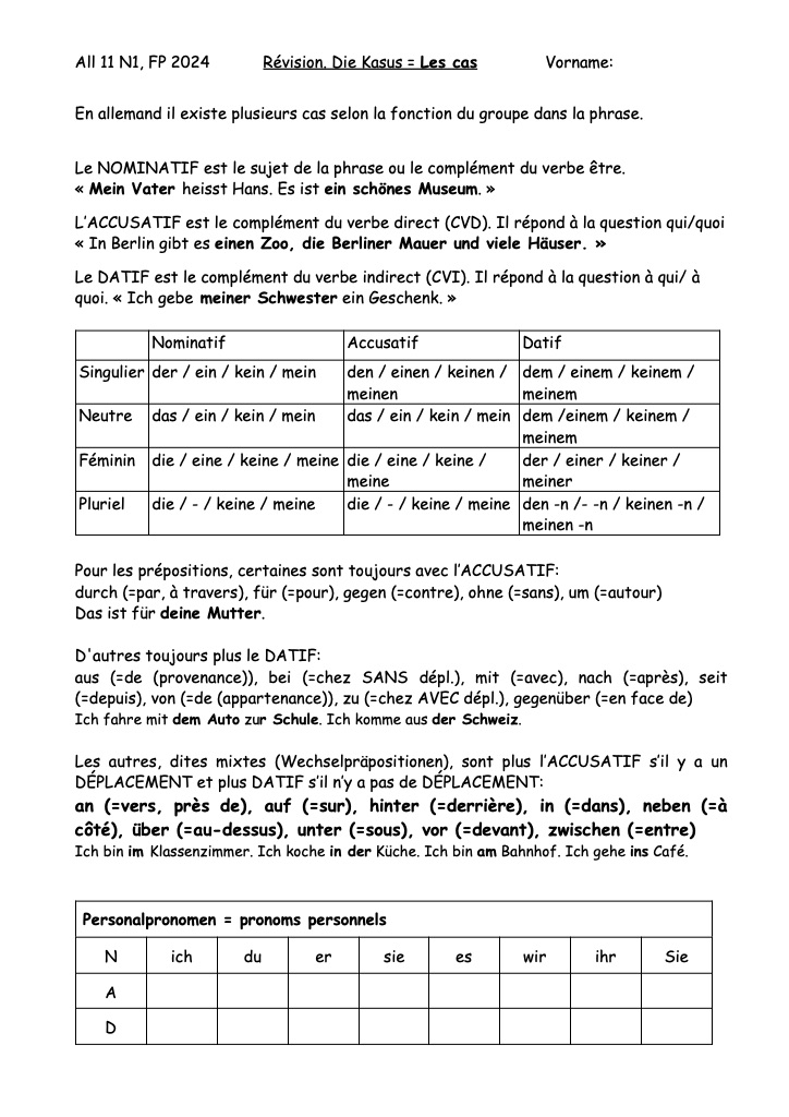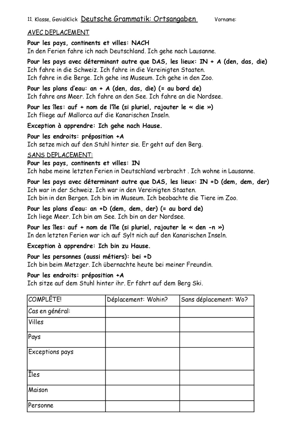Compléments de lieux / Ortsangaben