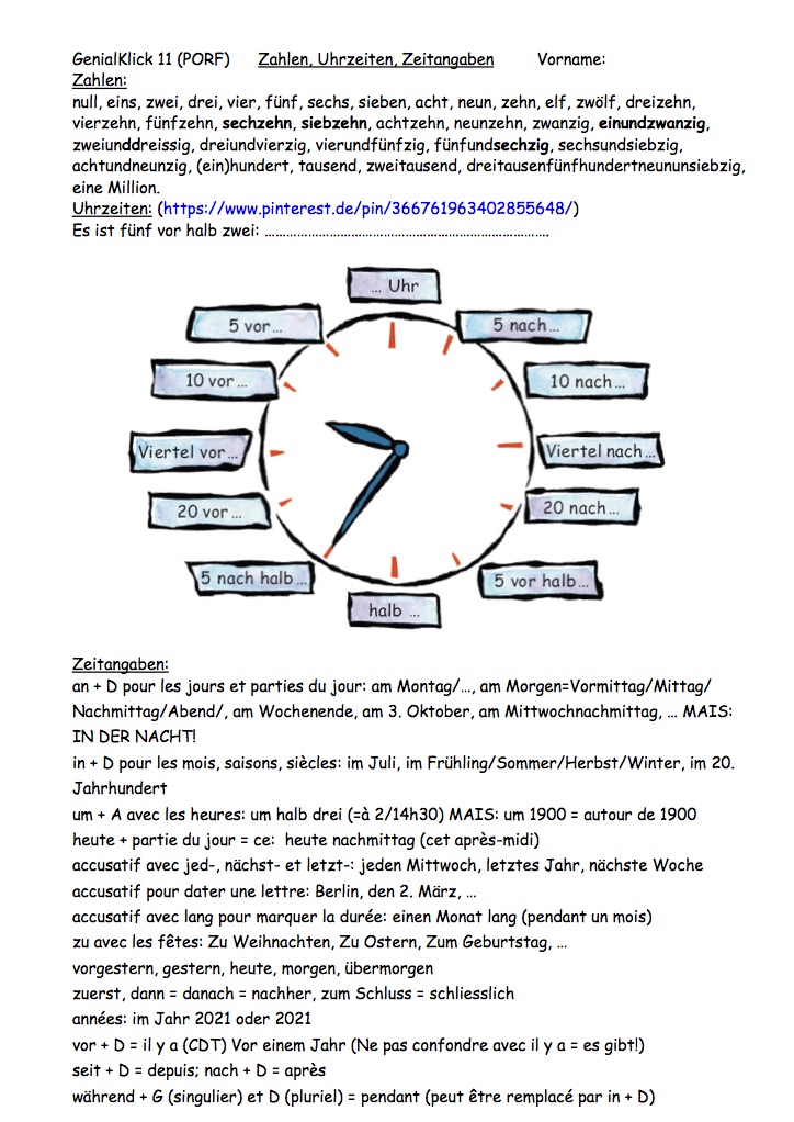 Compléments de temps / Zeitangaben