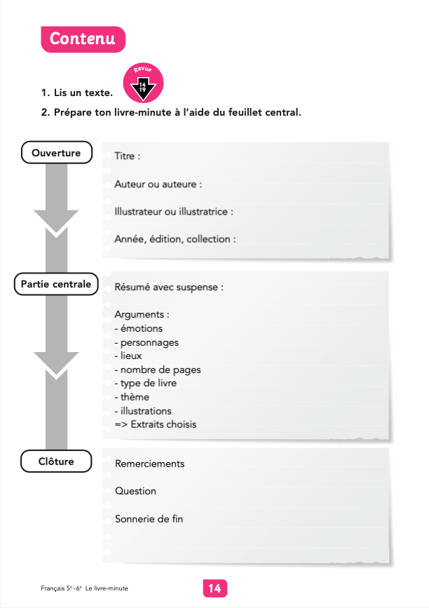 => Au préalable, nous avions écouté le livre-minute de "La rentrée" pour identifier le contenu des 3 parties structurantes d'un livre-minute. Et les élèves ont découpé puis scotché les premières de couverture dans leur cahier.