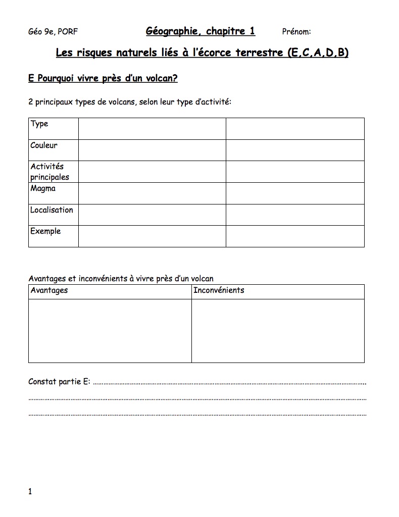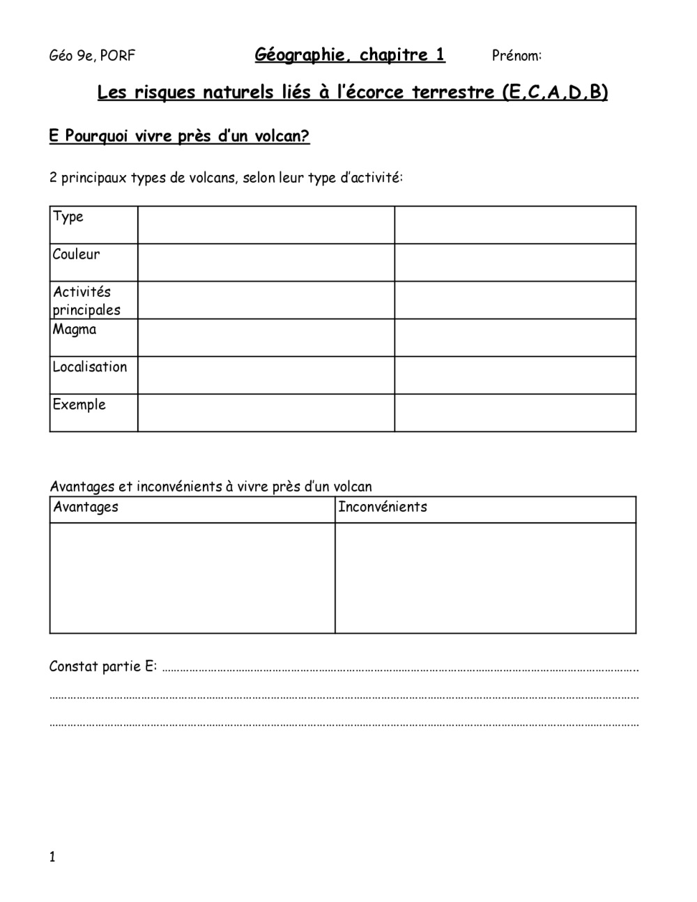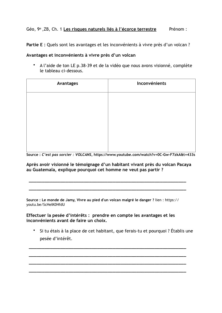 Géo 9 chapitre 1 Les risques naturels liés à l'écorce terrestre modules ECADB, fiches d'accompagnement et obj. TS