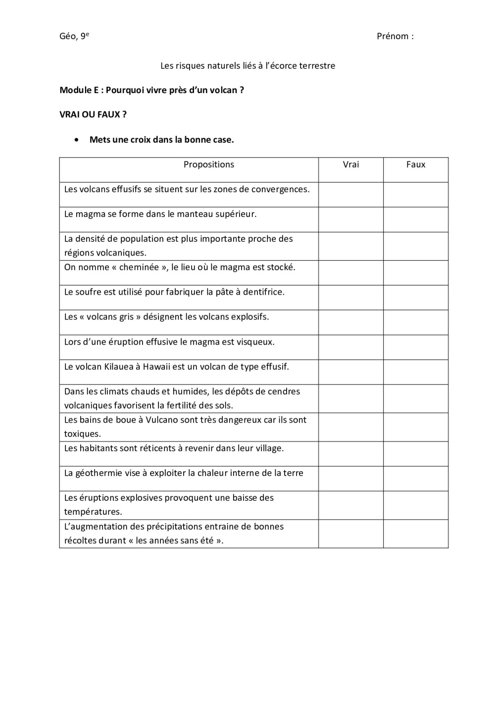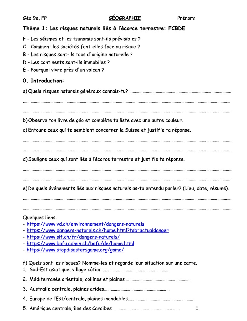 9 géographie, chap.1, Les risques naturels liés à l'écorce terrestre, modules ECADB, FCBDE (2024) fiches et 1 MC