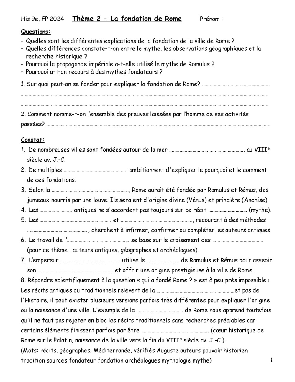 9 histoire, th. 2 et 4, Rome, fondation et empire romain