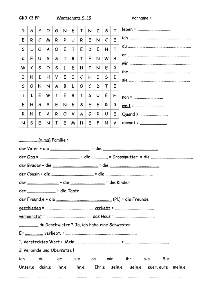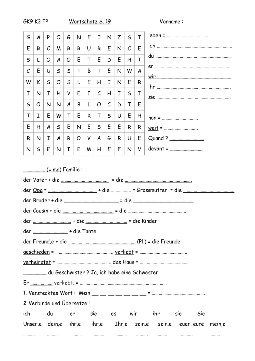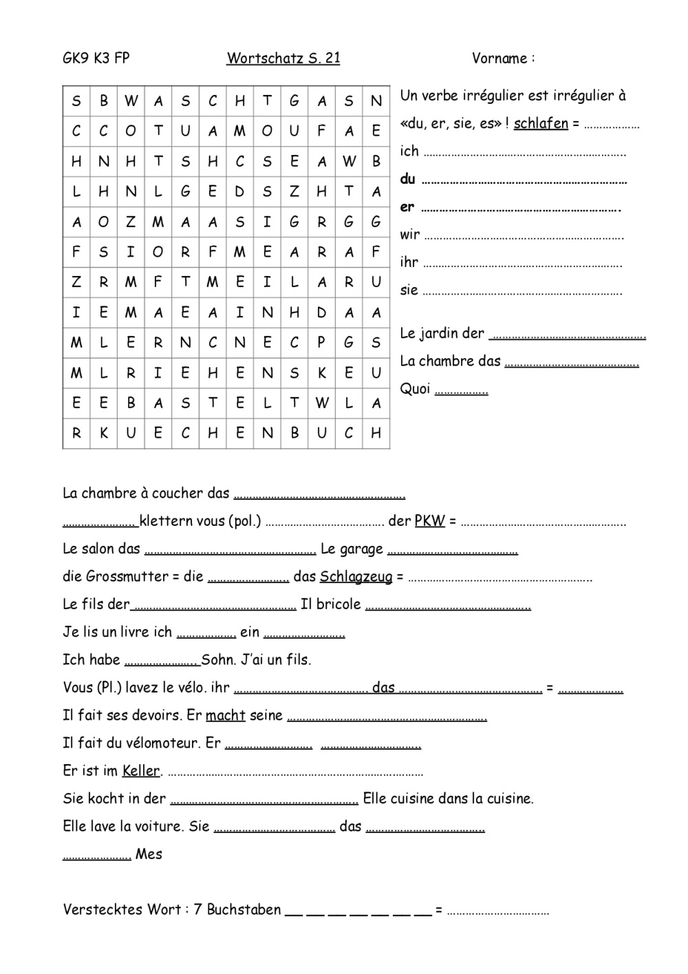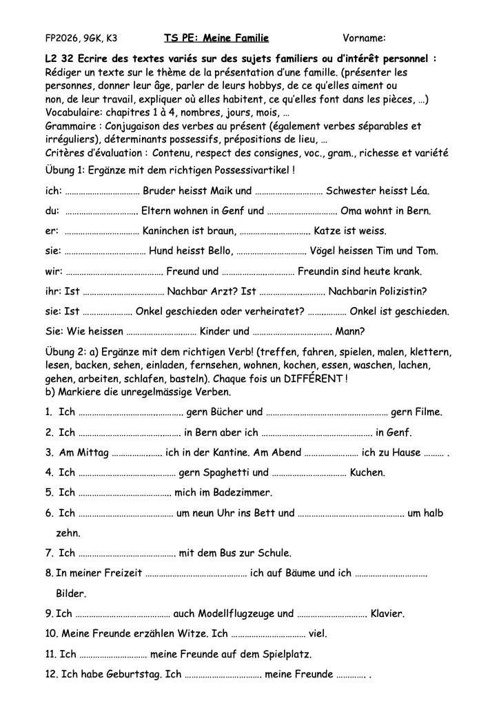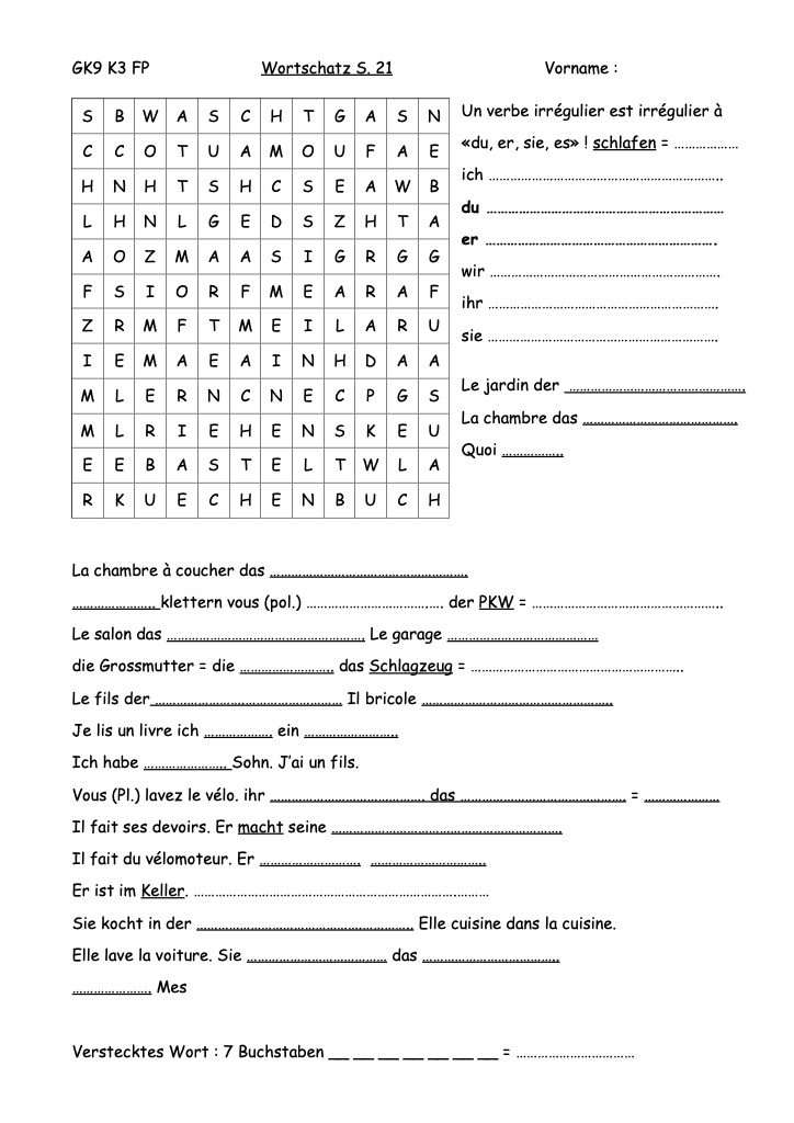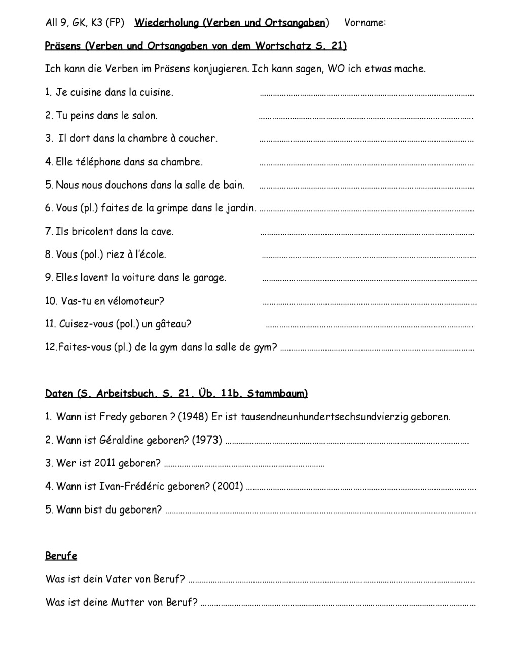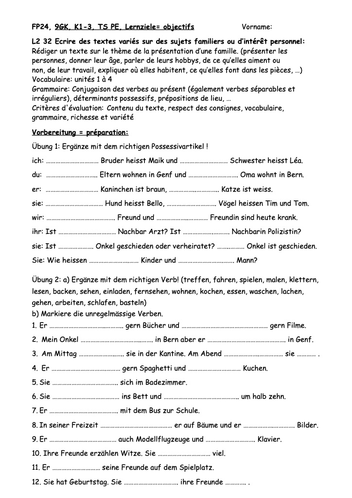 9GK K3 Grammatik: présent, impératif, place du verbe, pronoms, dét poss, cas: NAD, Partnerarbeit, Berufsliste