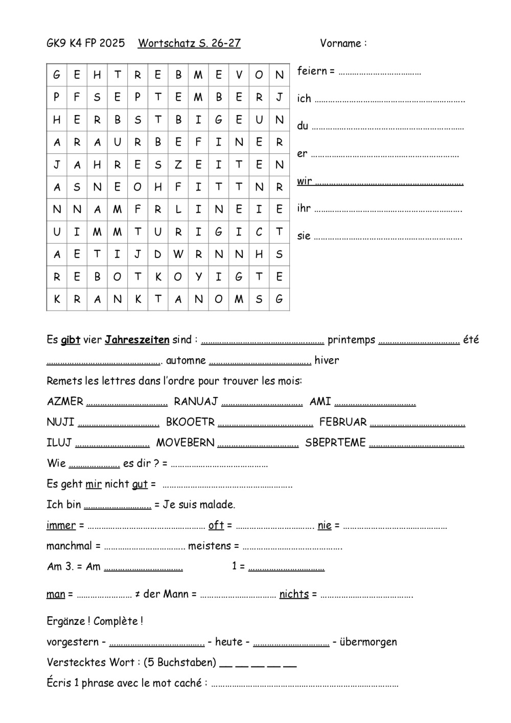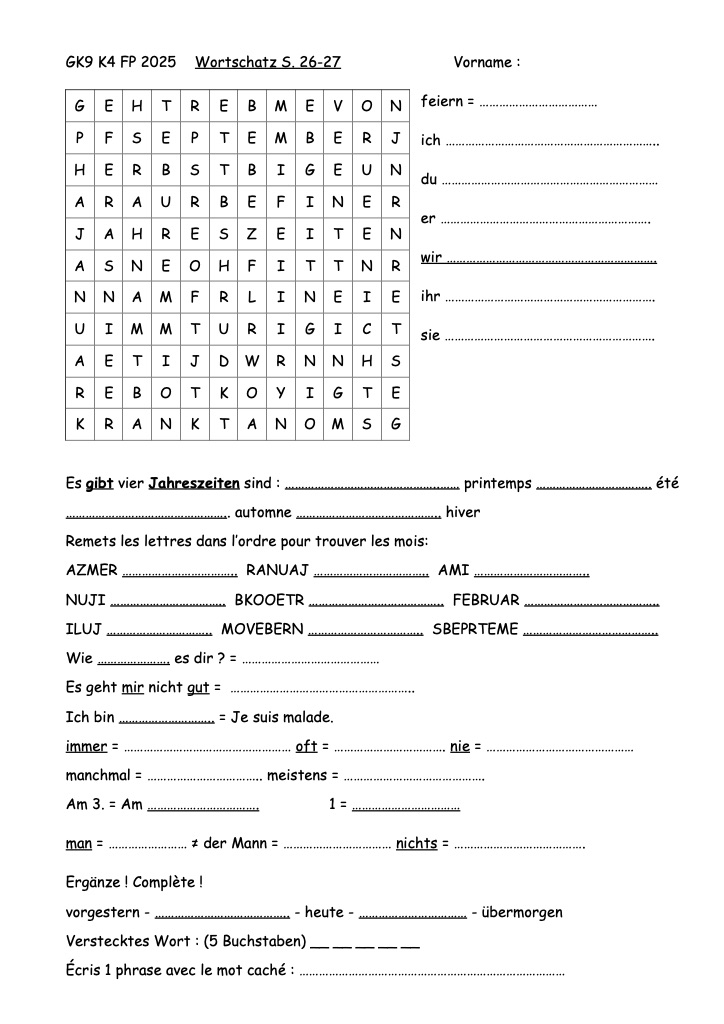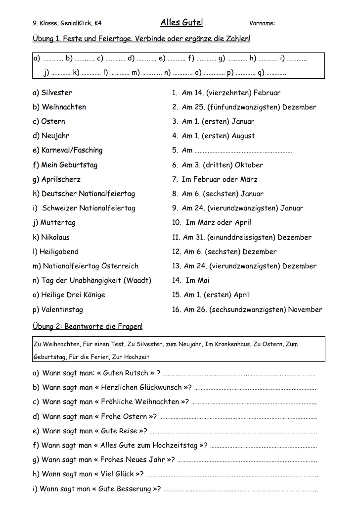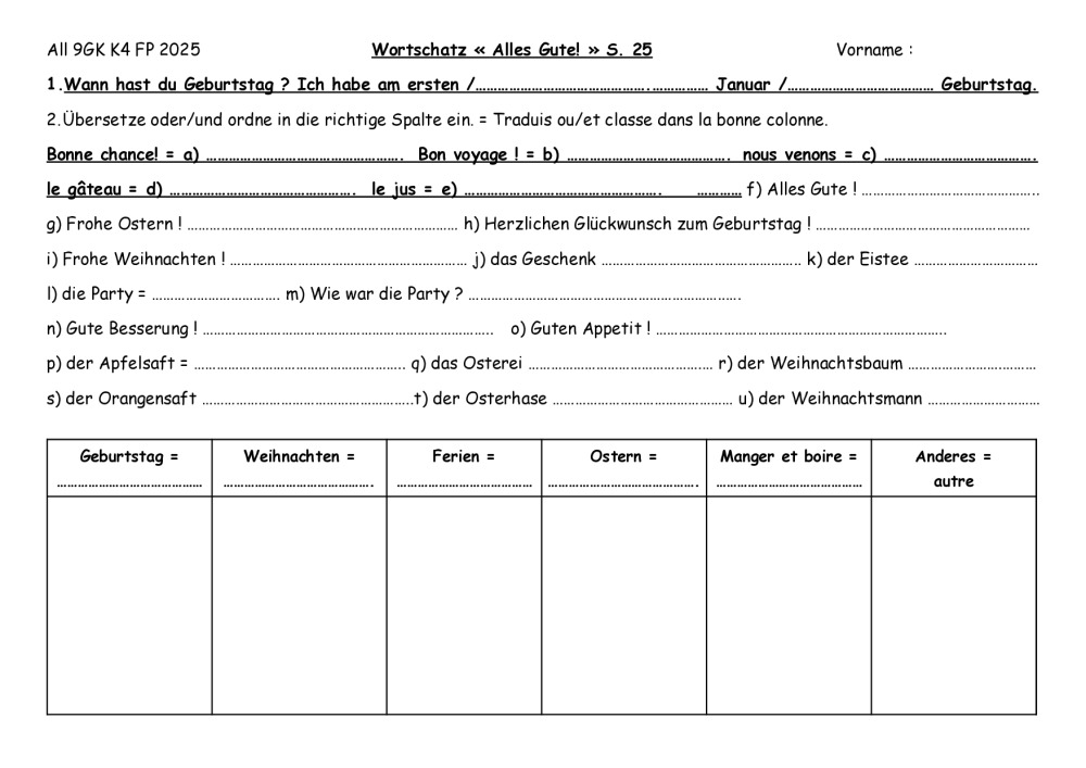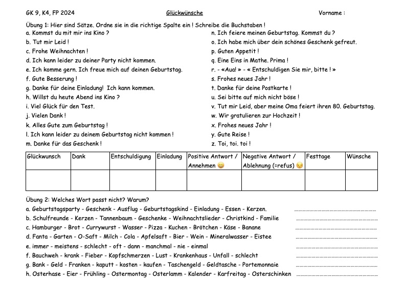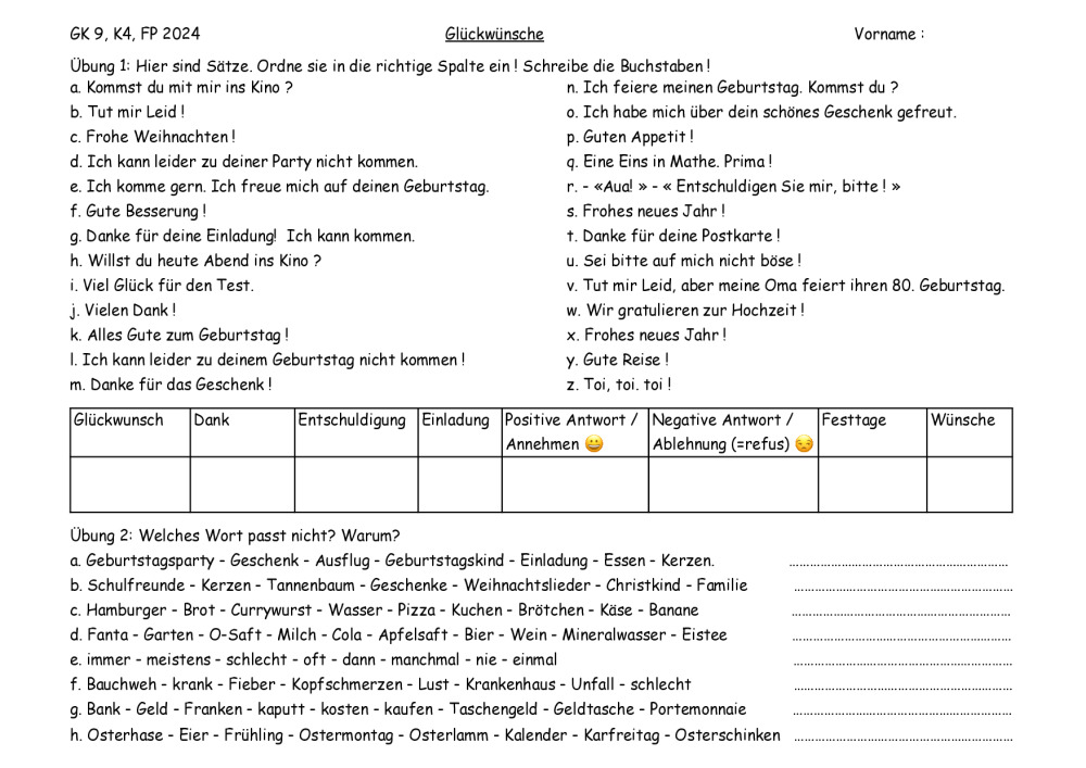 Fiche sur les souhaits, fêtes, ... Avec corrigé