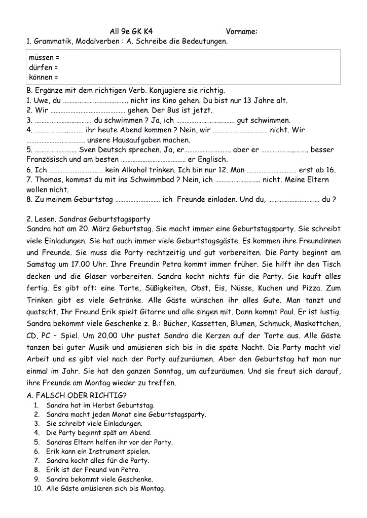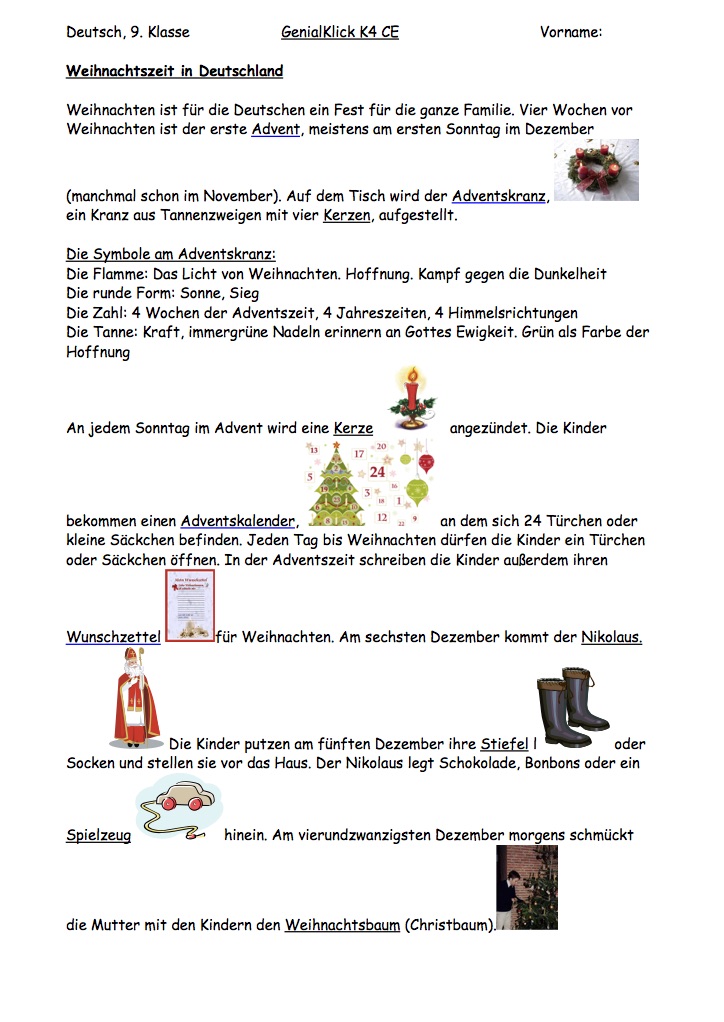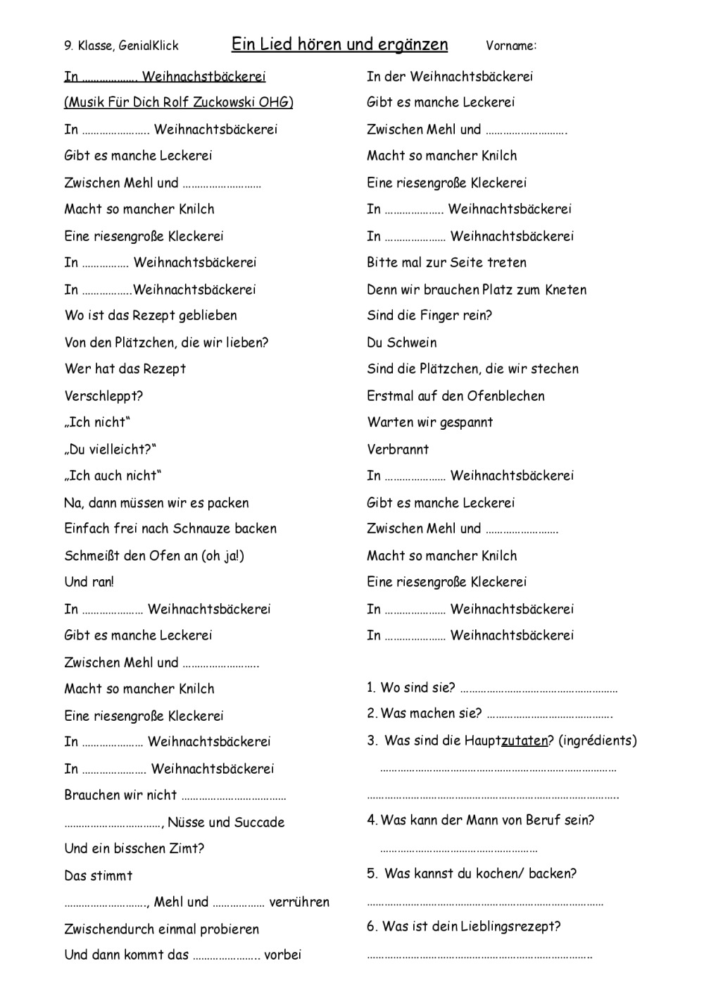 9GK K4 Glückwünsche, Feste und Feiertage, 2 Lieder, Obj. TS CO, In der Weihnachtsbäckerei, Modalverben + CE