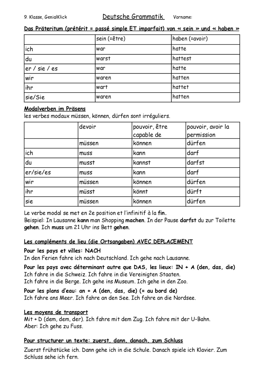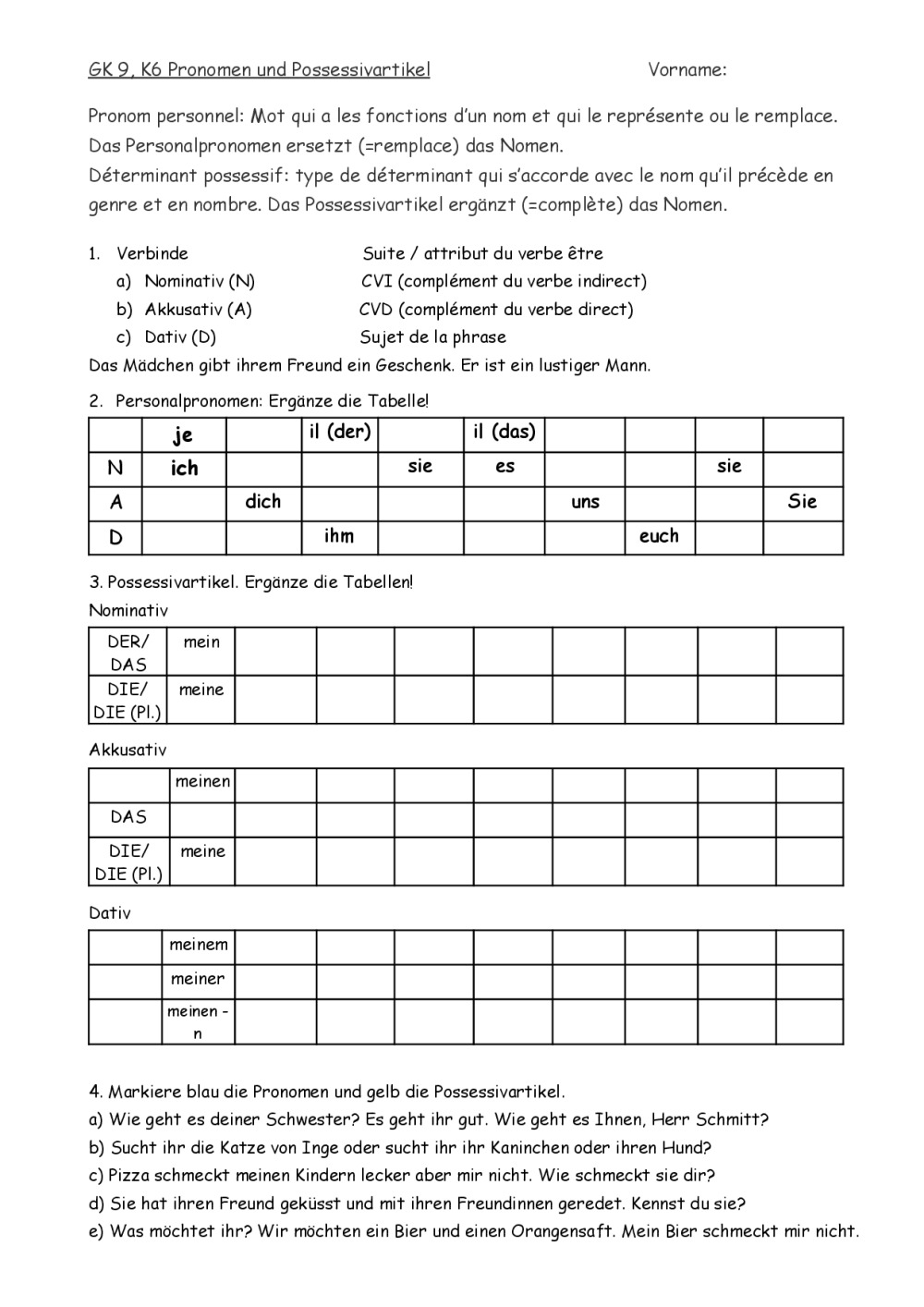 9GK K6 Personalpronomen und Possessivartikel, 2 chansons Perfekt: zu spät et Warum hast du das getan?