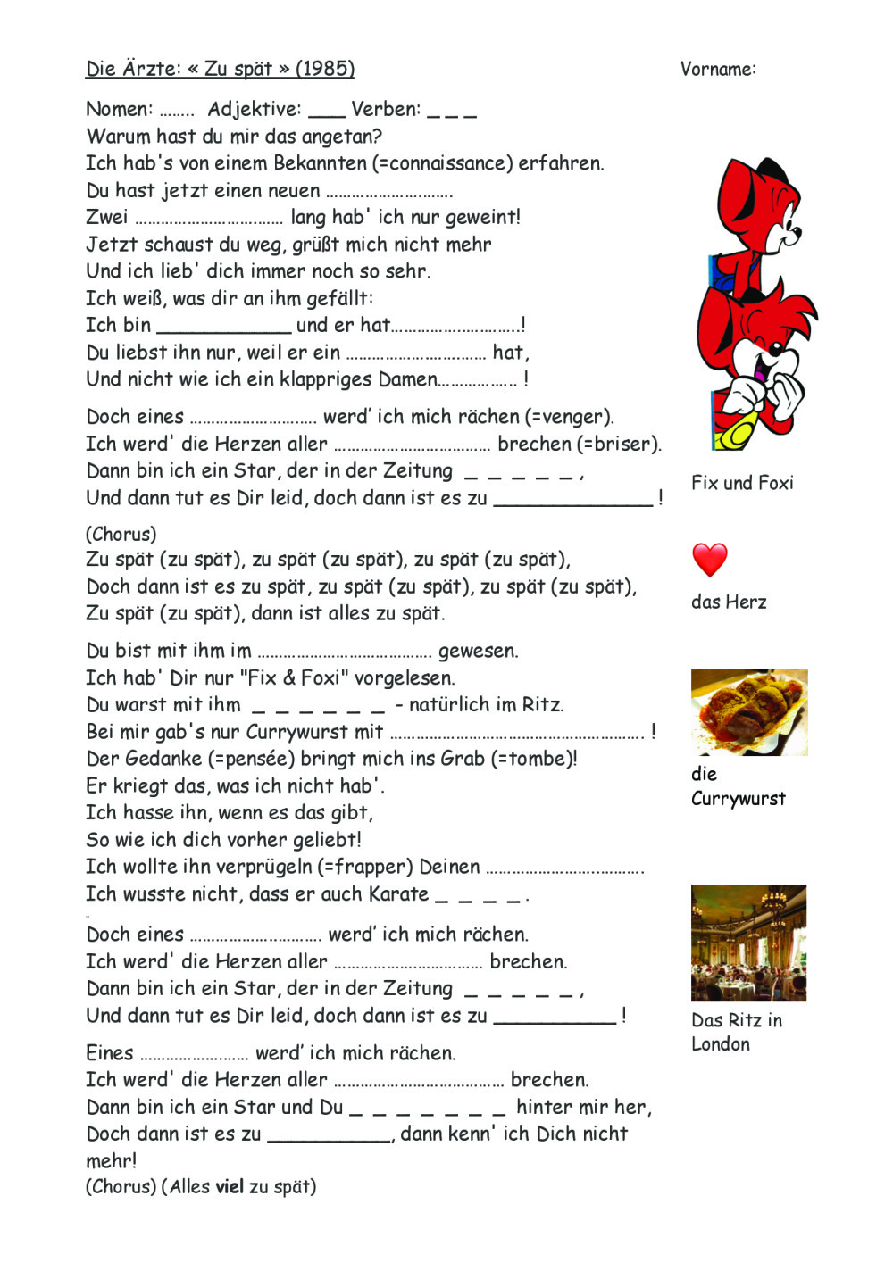 2 chansons pour exercer le Perfekt. Avec corrigé. Die Prinzen "Warum hast du das getan", Die Ärzte: "Zu spät"