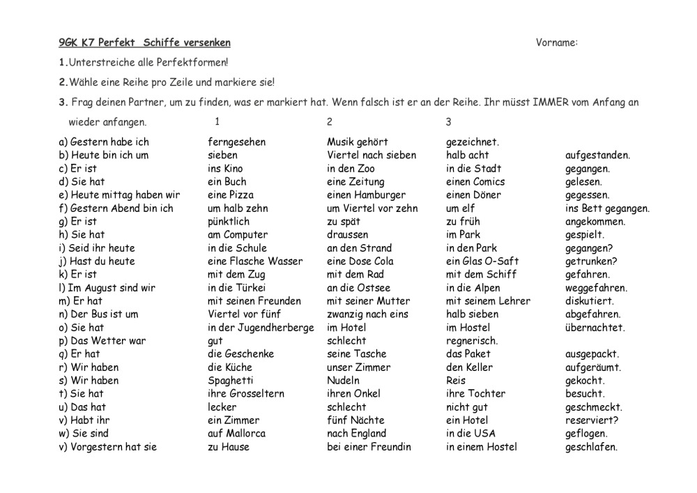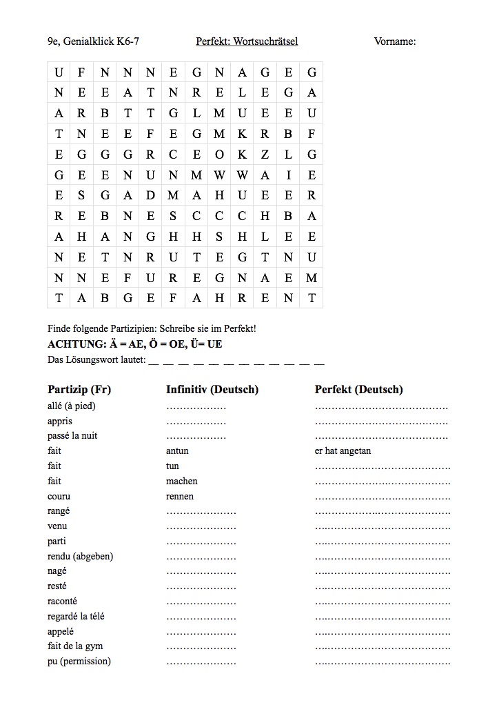 9GK K7 Perfekt, Wortsuchrätsel, TS PO, TS CE
