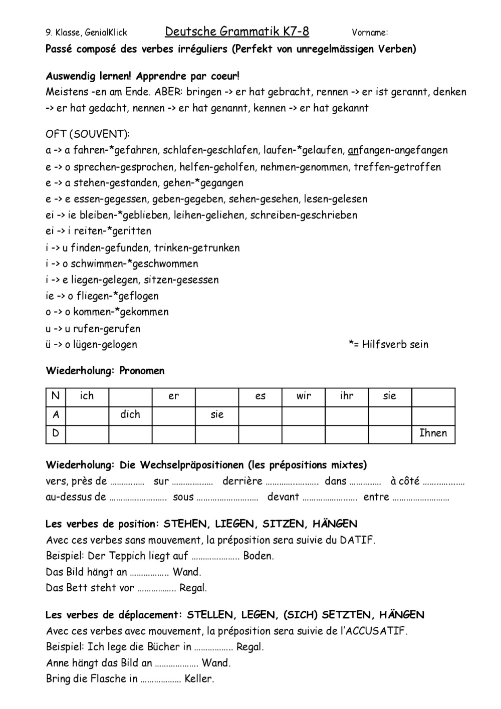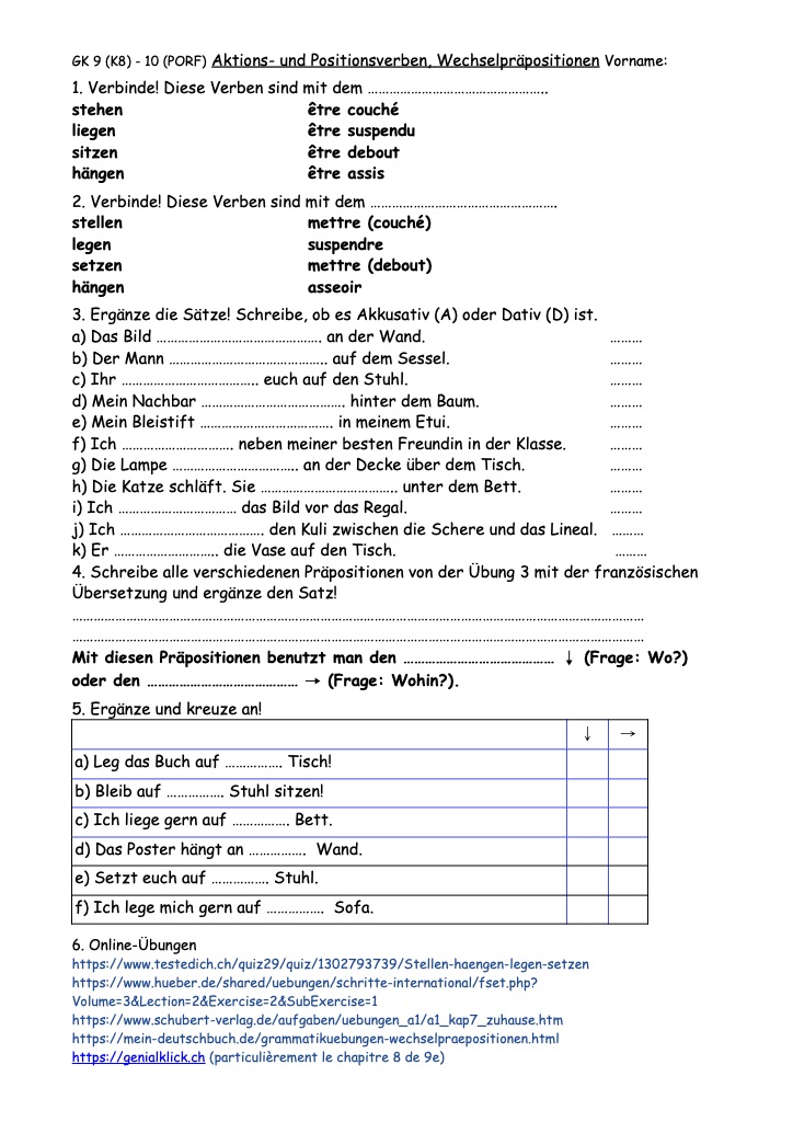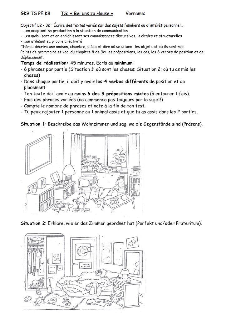 9GK K8 Aktions- und Positionsverben, Wechselpräpositionen, stehen, stellen, ... Zimmer, TS PE, CDL