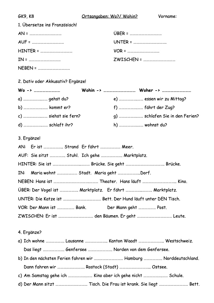 stehen, liegen, sitzen, hängen, stellen, legen, setzen, hängen, an, auf, hinter, in, neben, über, unter, vor, zwischen