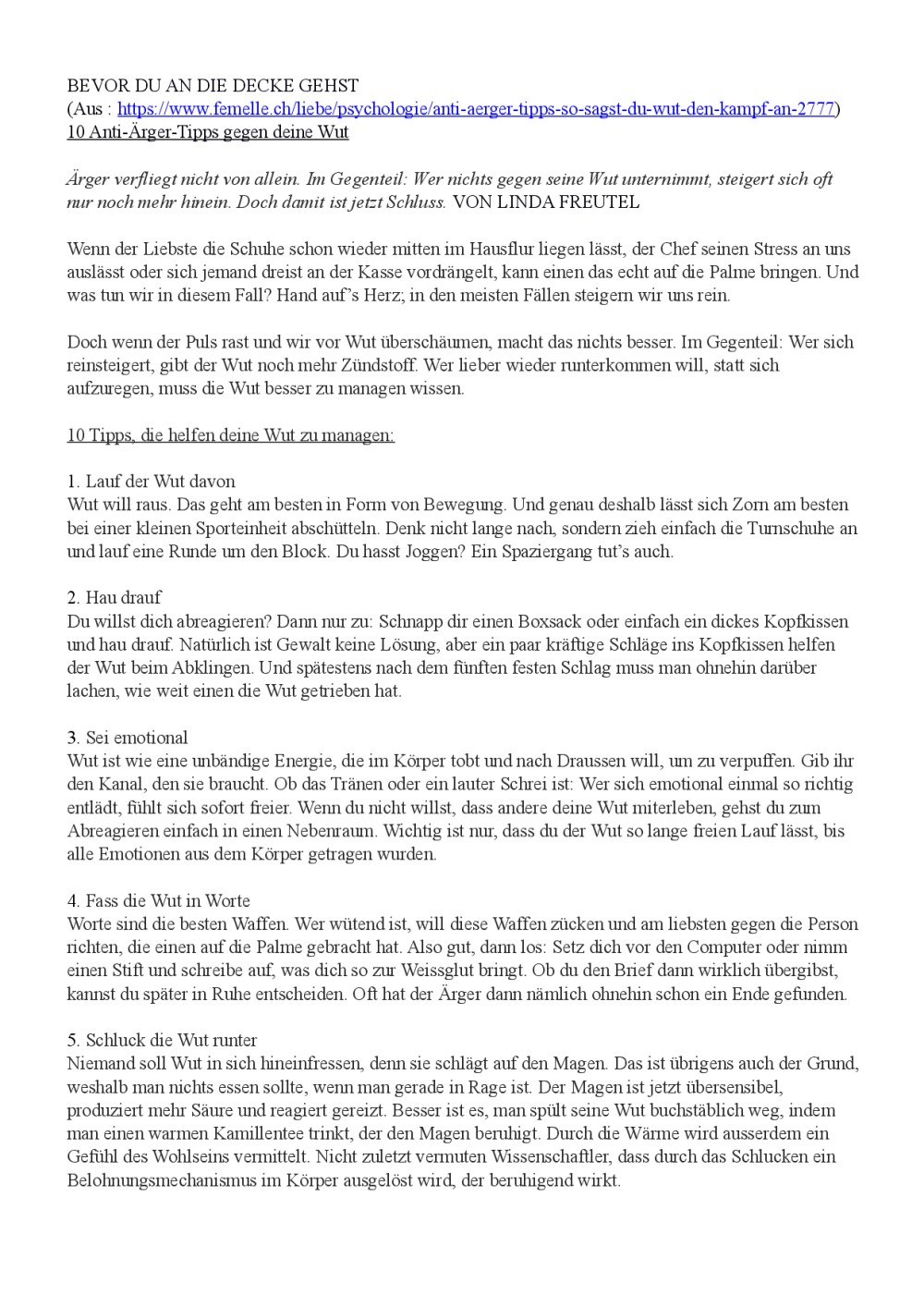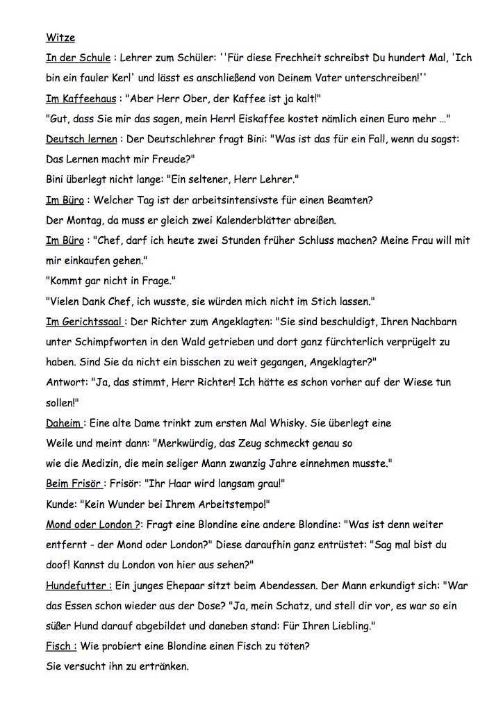 Allemand 11: verschiedene Texte: Anti-Ärger Text, Witze, Kevin