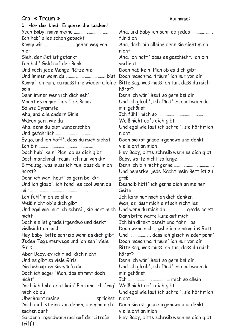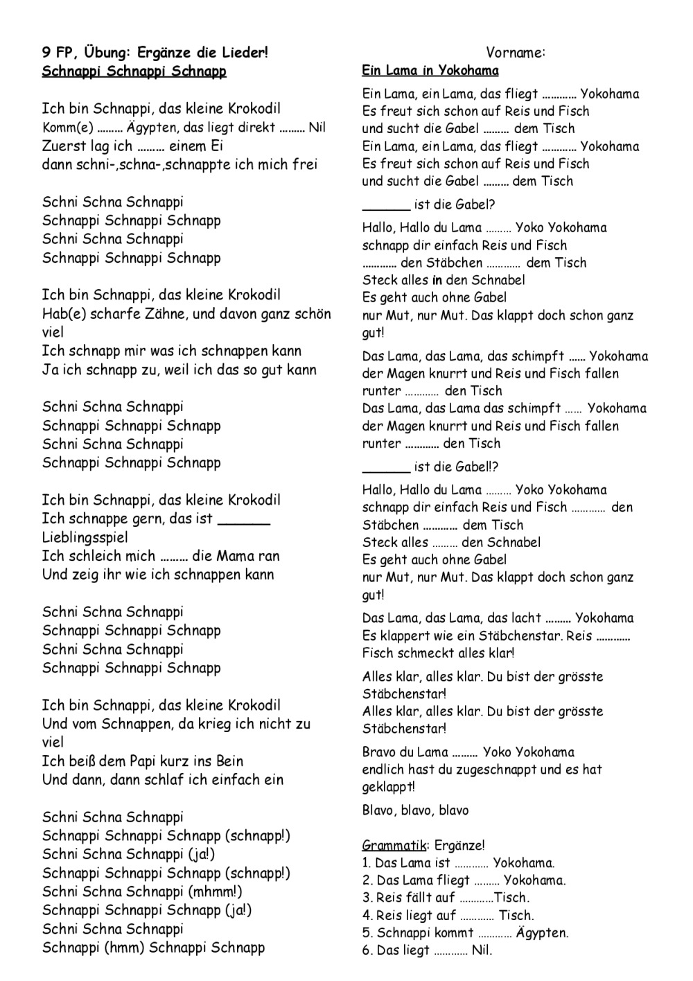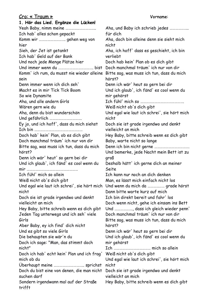 Allemand: LIEDER: "MfG", Schnappi, Lama, Einmal um die Welt, Traum, 10 kleine Jägermeister, Schokolade, Astronaut