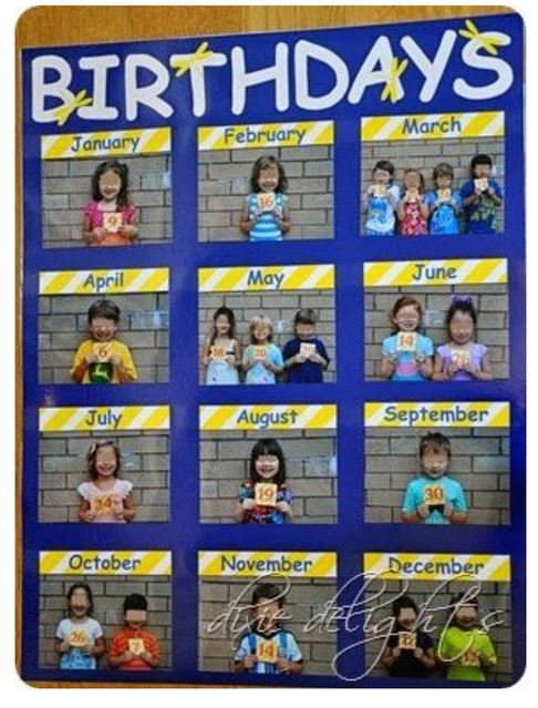 Calendrier-photos : les anniversaires des élèves Ressource N°3429 partagée le 28.07.17 à 20:24 - Mise à jour le 28.01.26 à 19:00 Quelques idées pour préparer le calendrier des anniversaires de la classe. Thème : la photo. (merci Pinterest !) Tout télécharger anniversaires1.jpg anniversaires2.jpg anniversaires3.jpg anniversaires4.jpg anniversaires5.jpg anniversaire6-ok.pdf